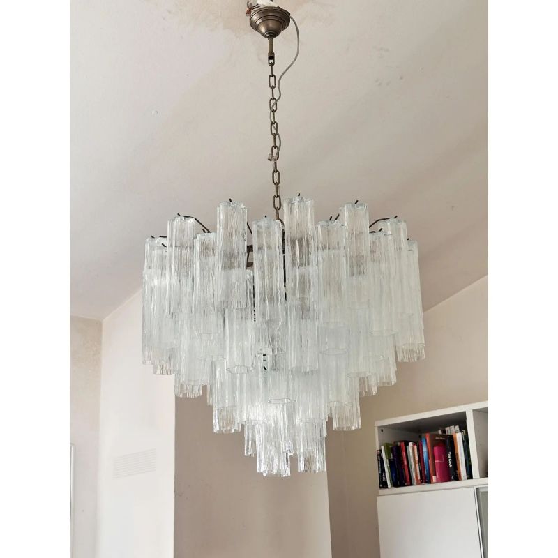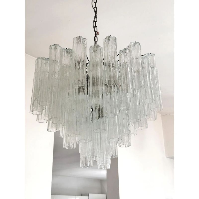 Scenographic italian hand-made chandelier withclear “tronchi”, elements of Murano glass.