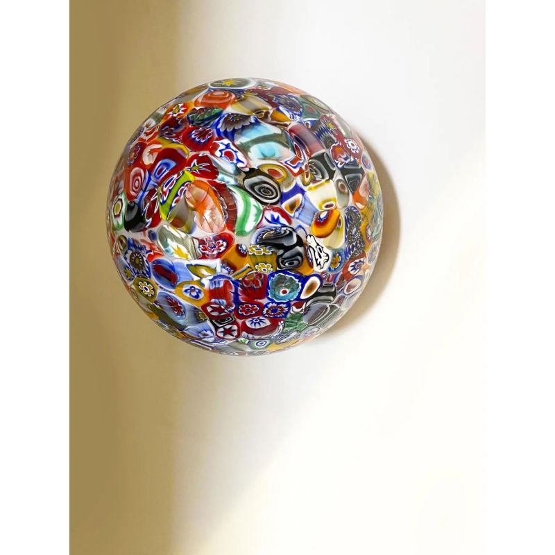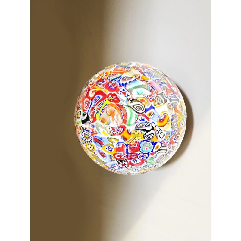 Impressive contemporary sphere in Murano glass with multicolored Murrine.