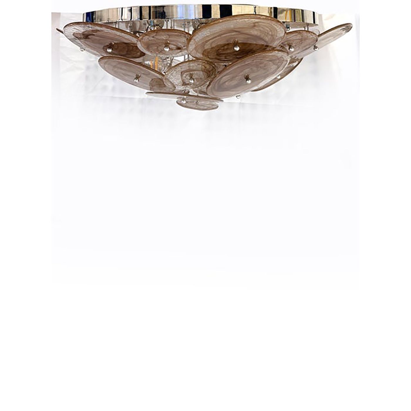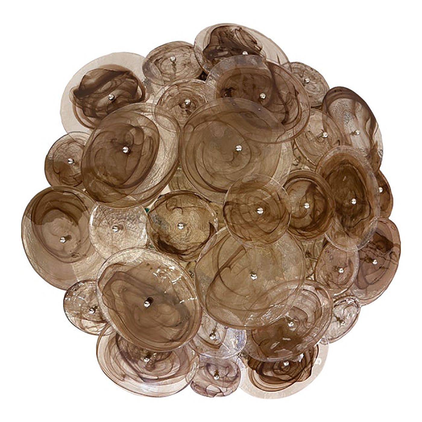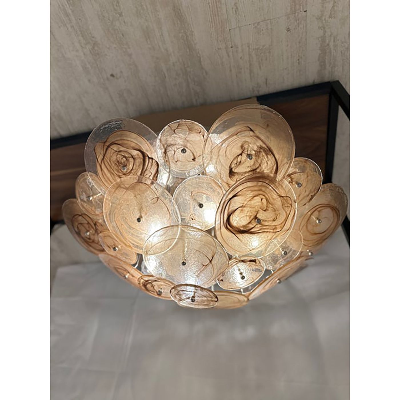 Contemporary Venied-brown Disks Murano Glass style Flush Mount
