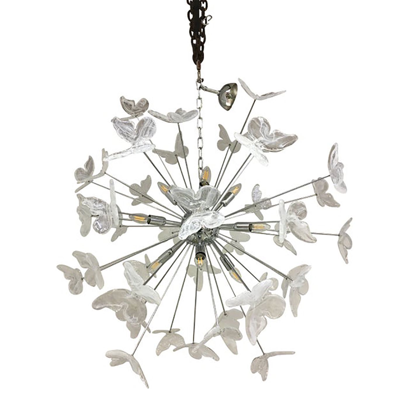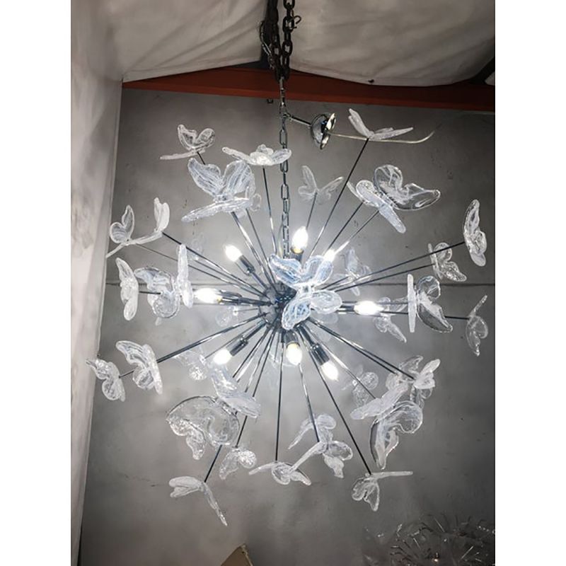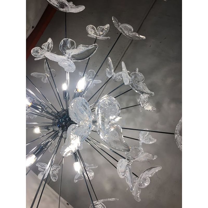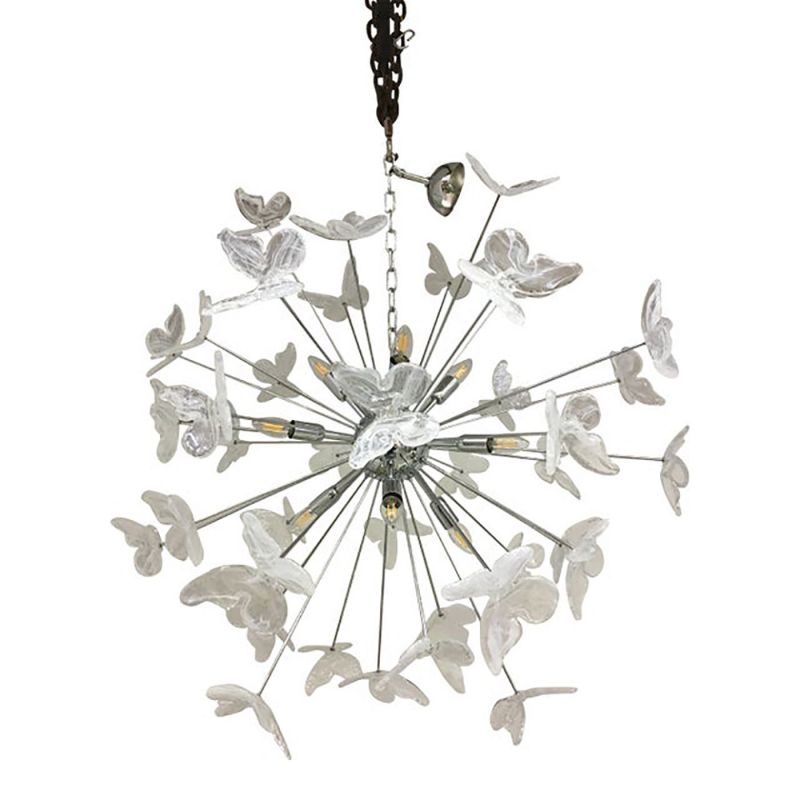 Murano Glass Sputnik Chandelier in kromo color and Clearand white Butterfly