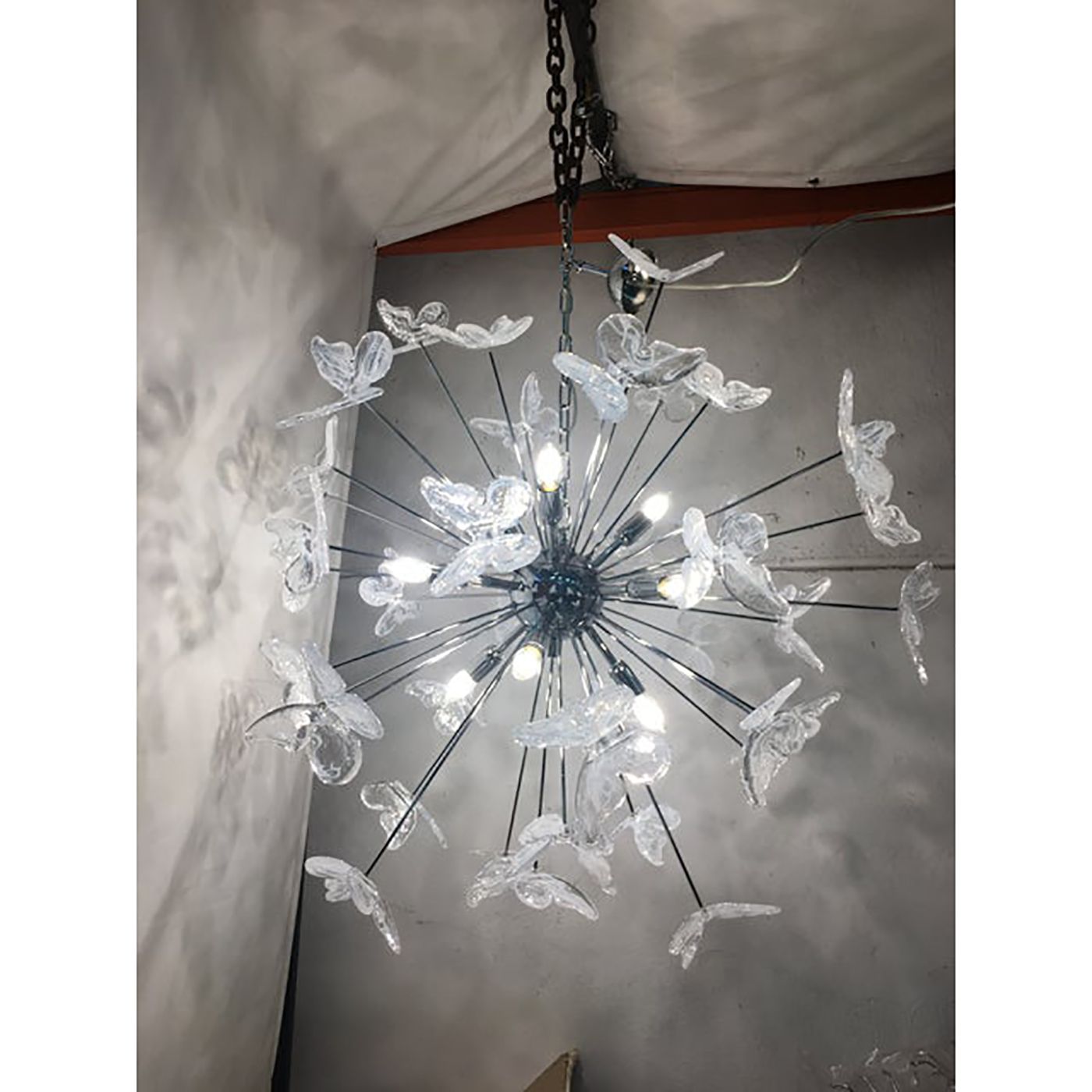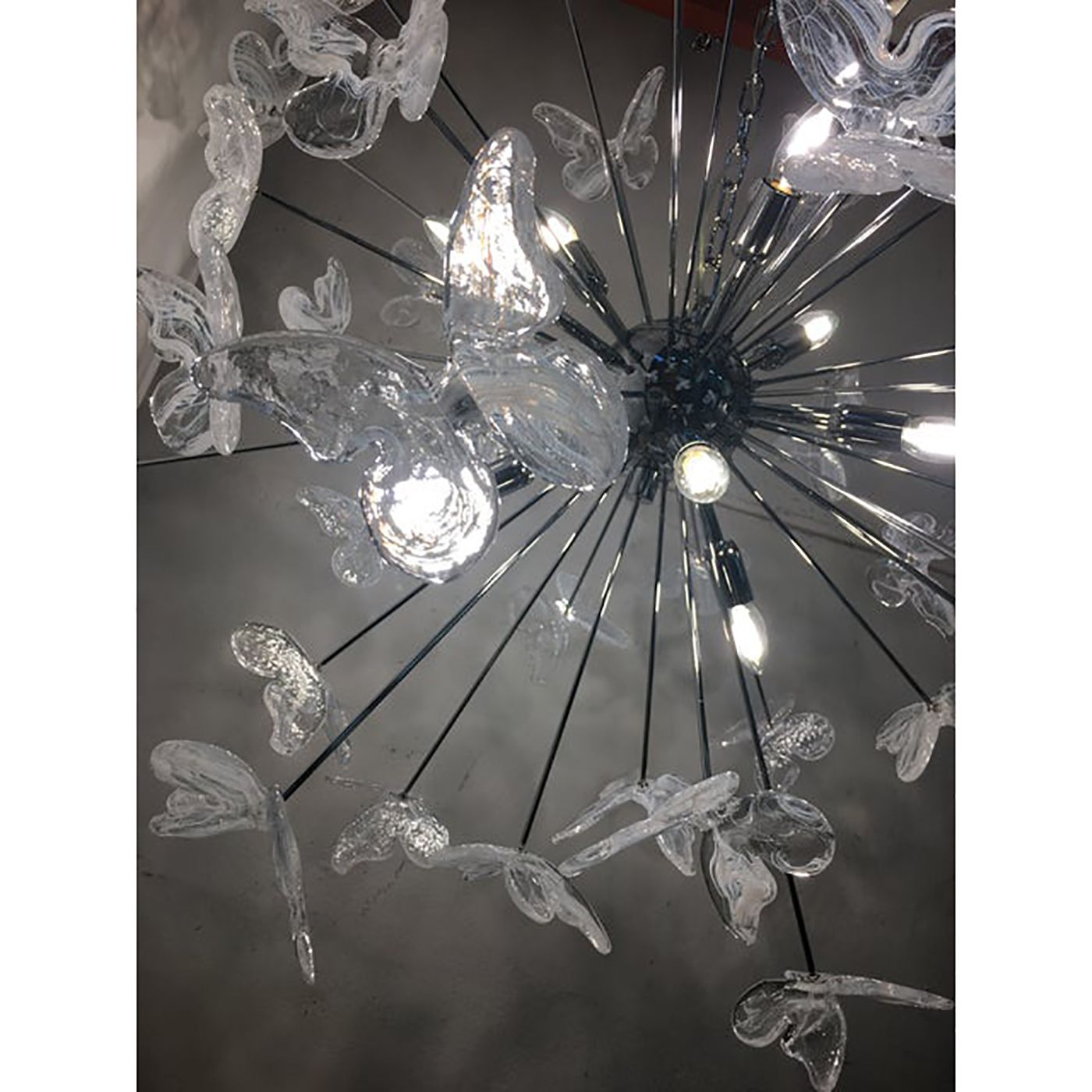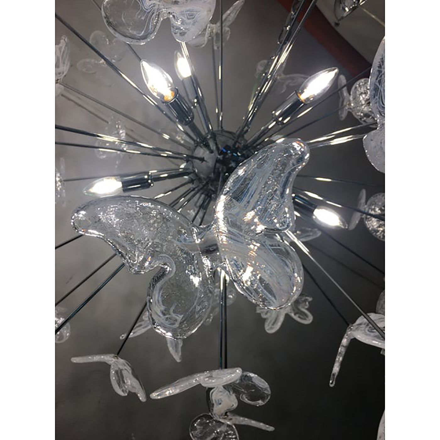 Murano Glass Sputnik Chandelier in kromo color and Clearand white Butterfly