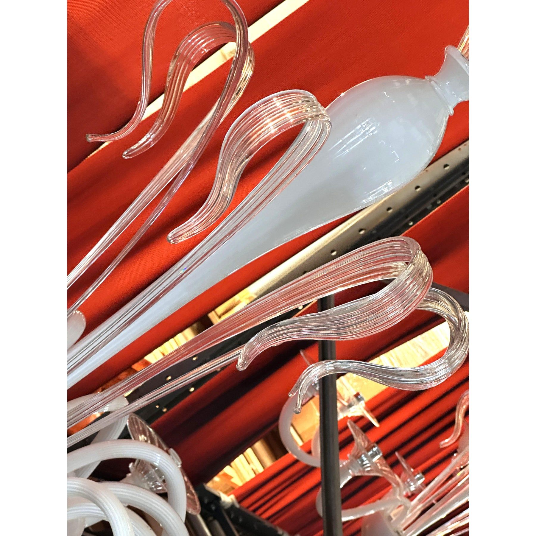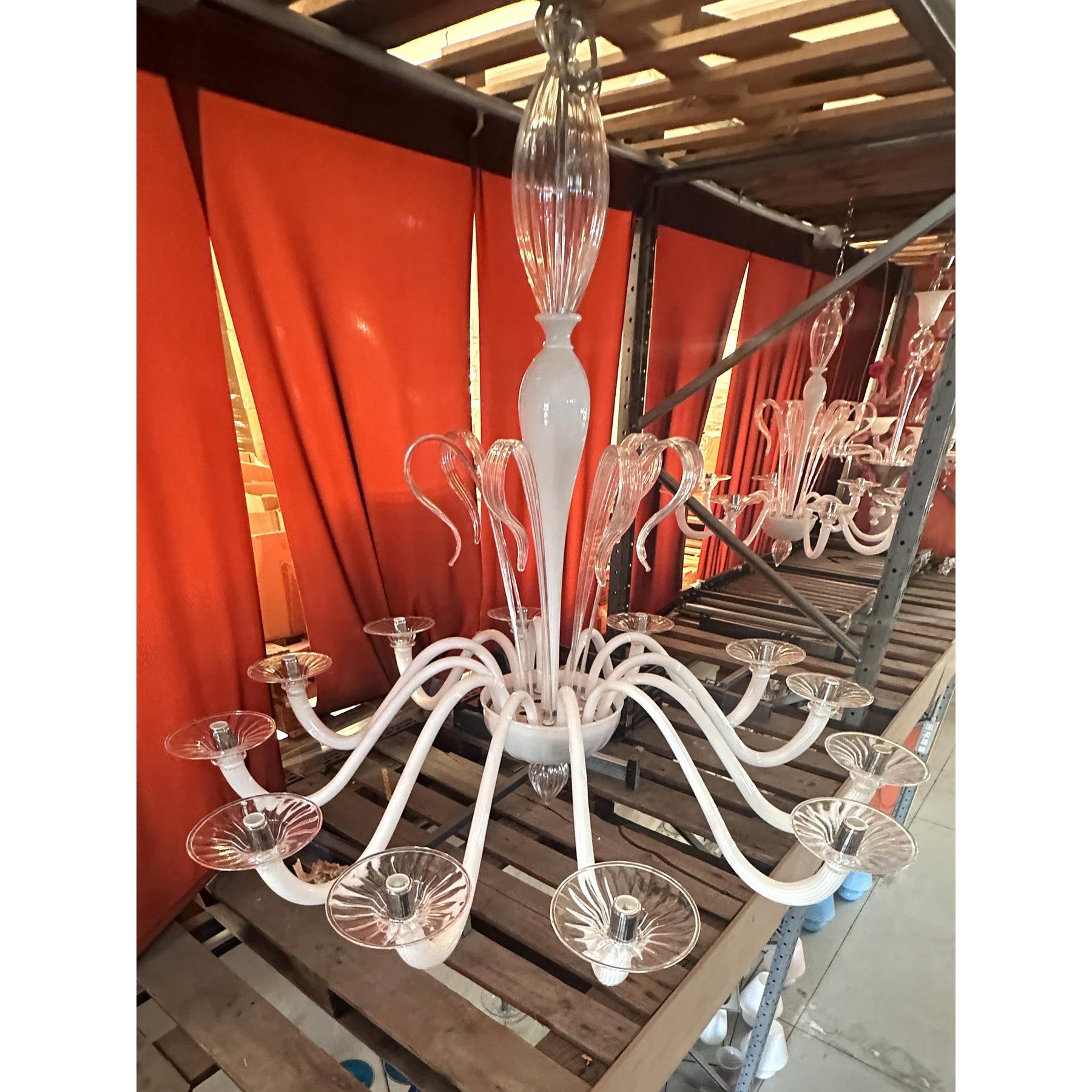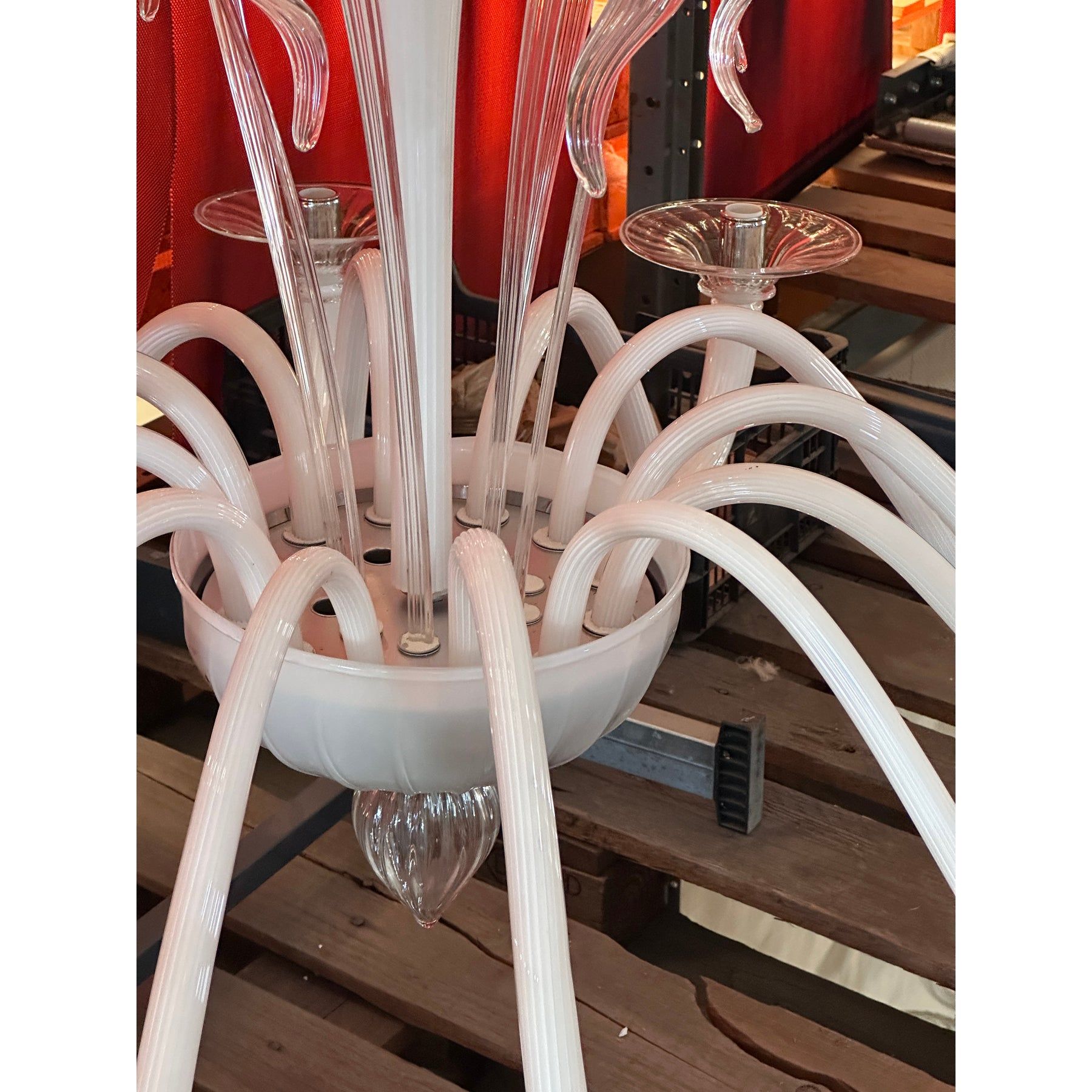 Contemporary White With Transparent Leaves Murano Glass Chandelier