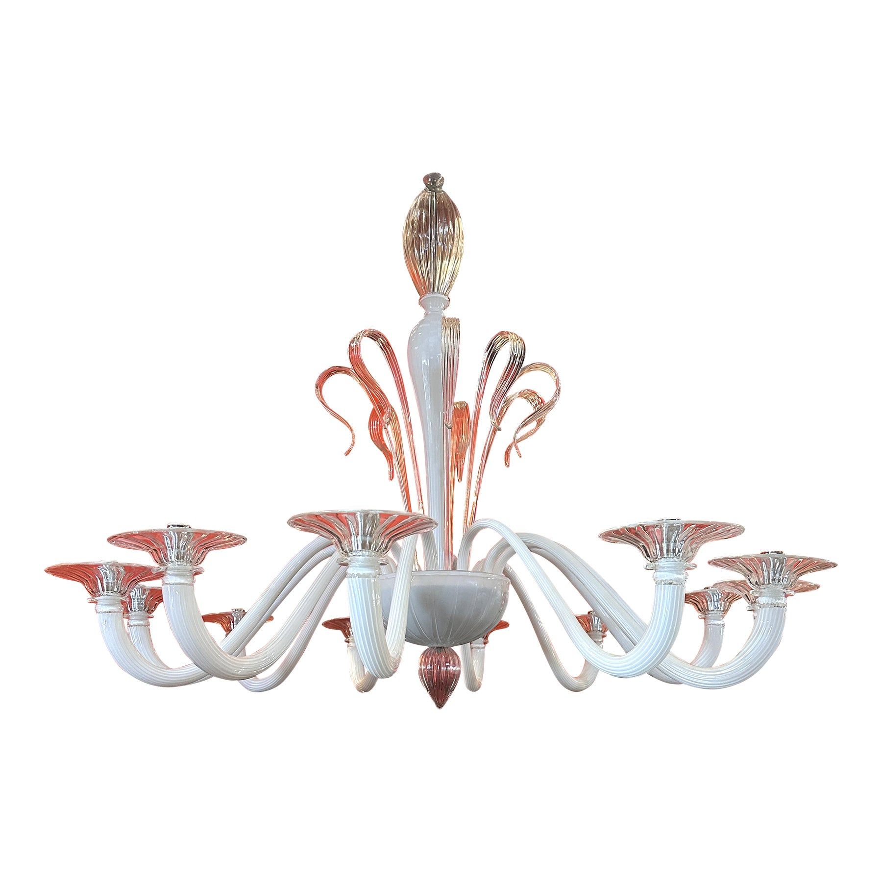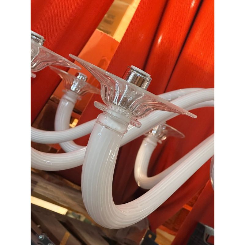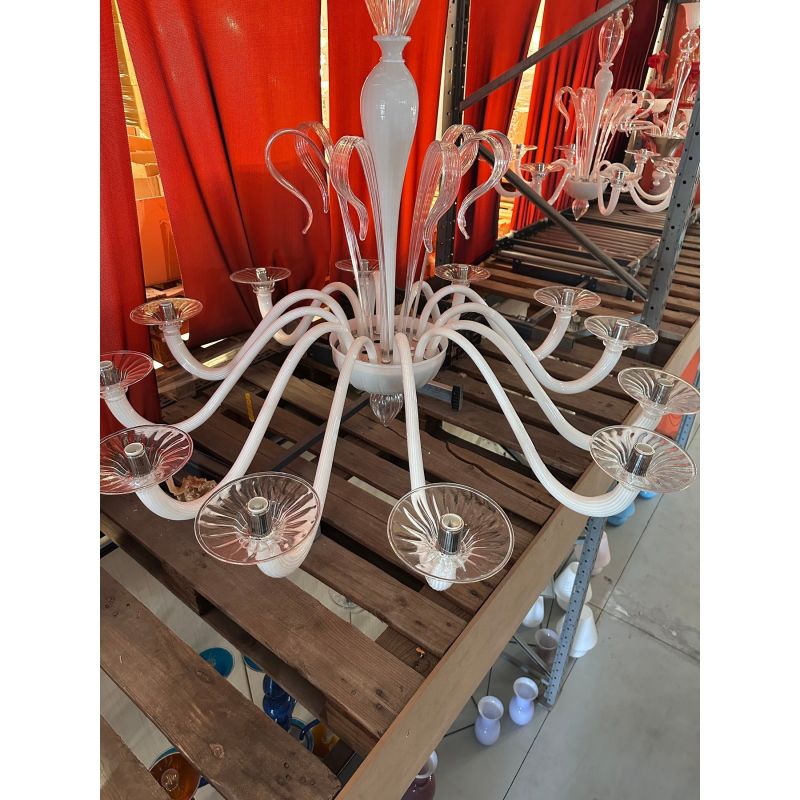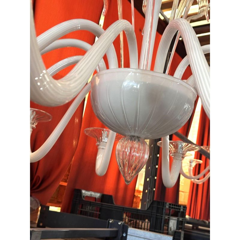 Contemporary White With Transparent Leaves Murano Glass Chandelier