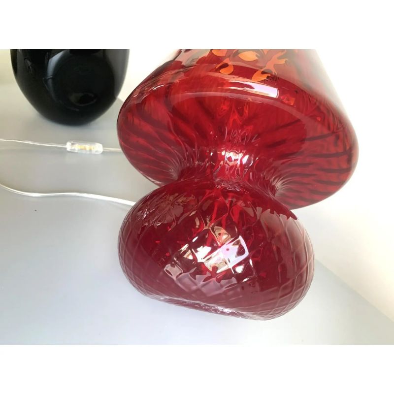 Diamond-Cut “Ballotton” Pattern Red Murano-Style Glass Lamp, Contemporary