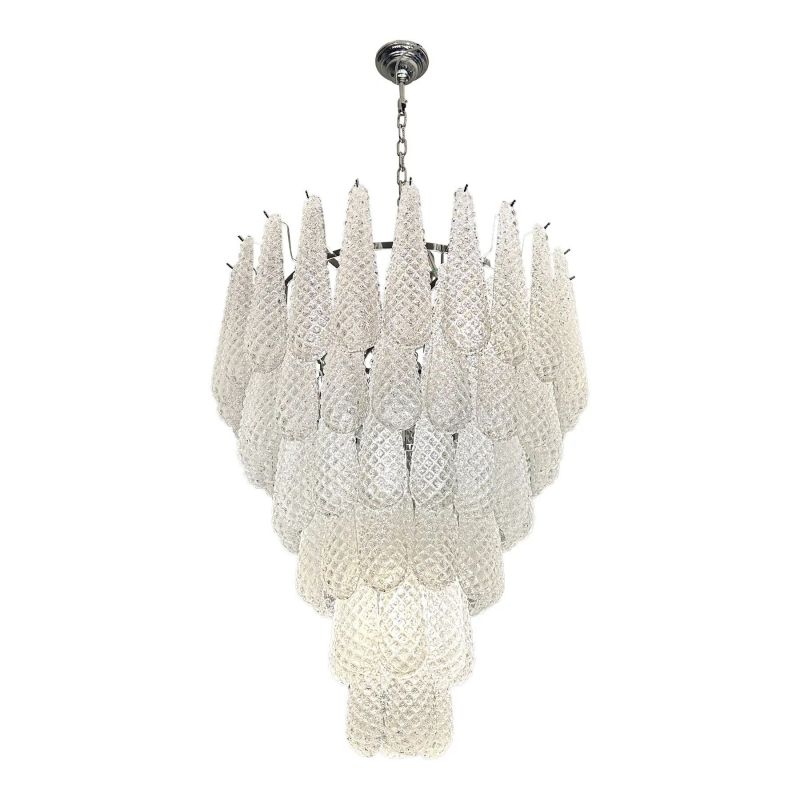 Huge Italian white graniglia “Conchiglie” Murano Glass Chandelier