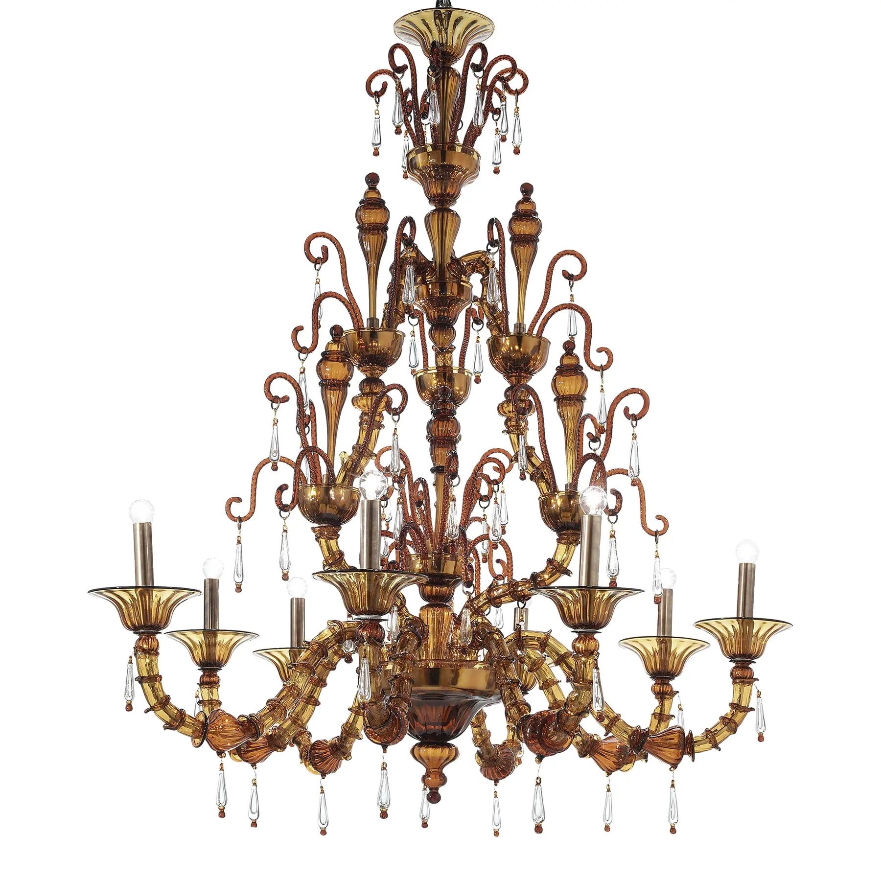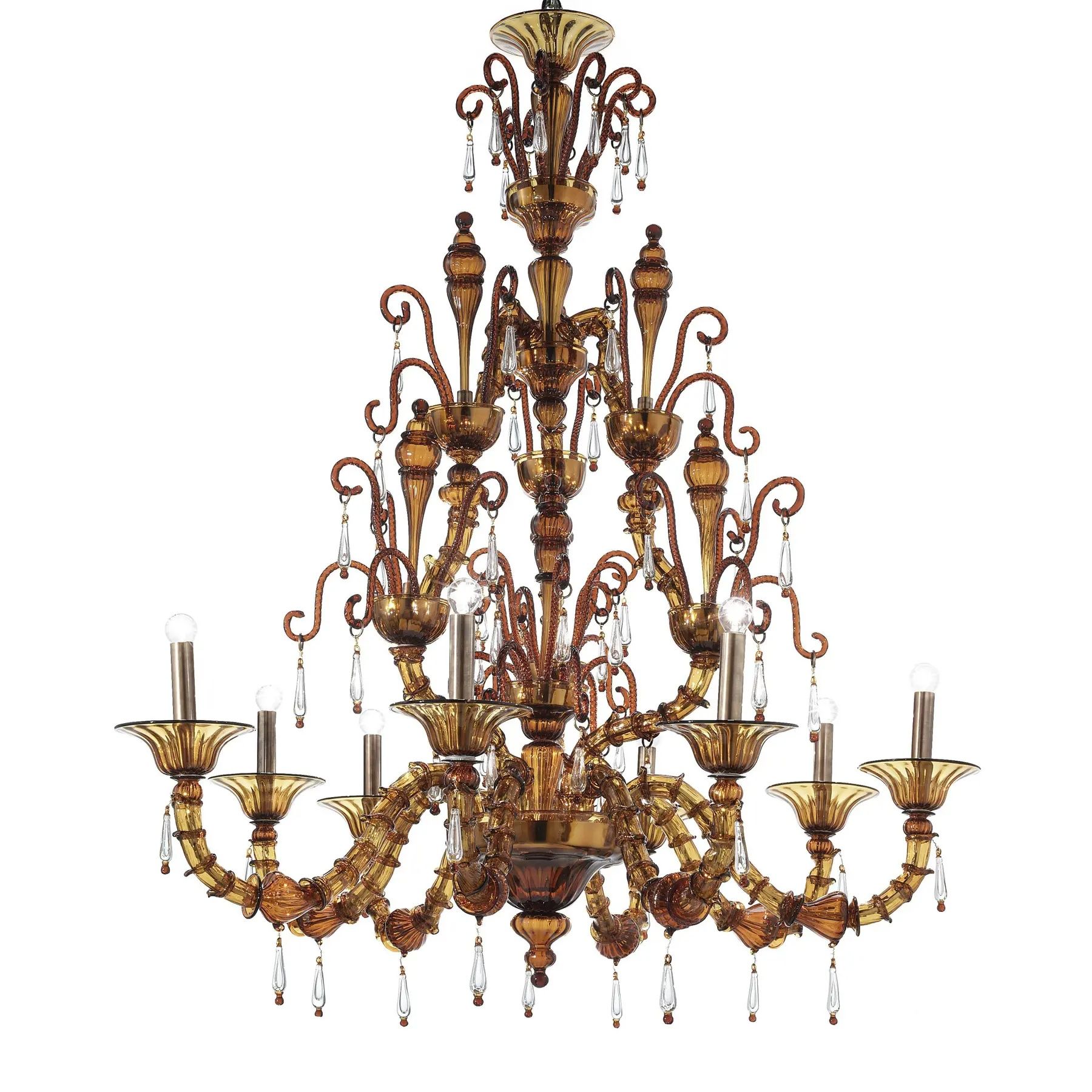 Imperial Venetian Modern Brown "Ca' Rezzonico" With Curls Murano Glass Chandelier