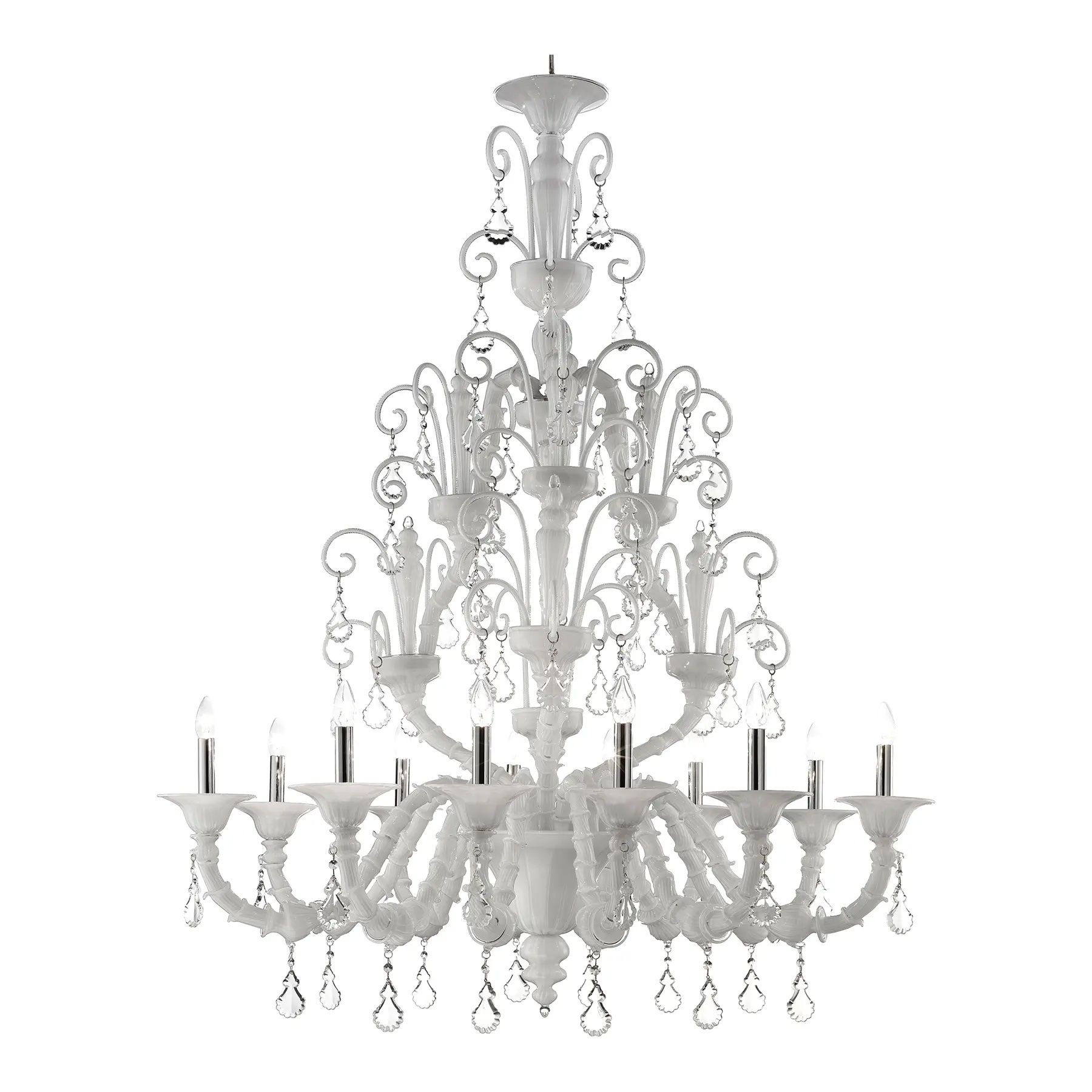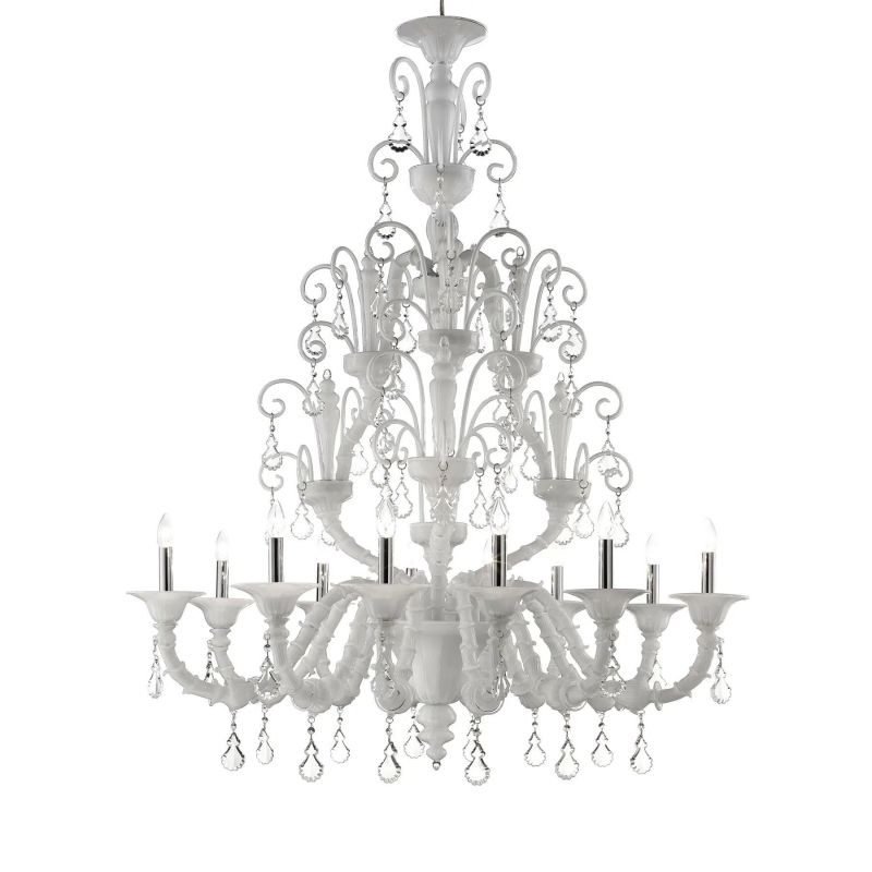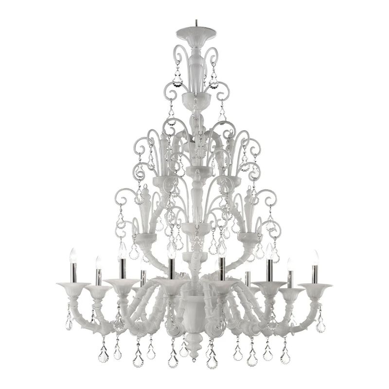 Imperial Venetian Modern White "Ca' Rezzonico" With Curls Murano Glass Chandelier