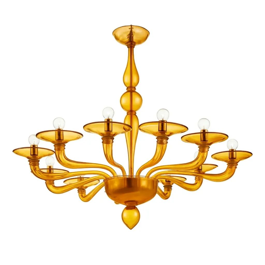Italian Contemporary Amber Murano Style Glass Chandelier