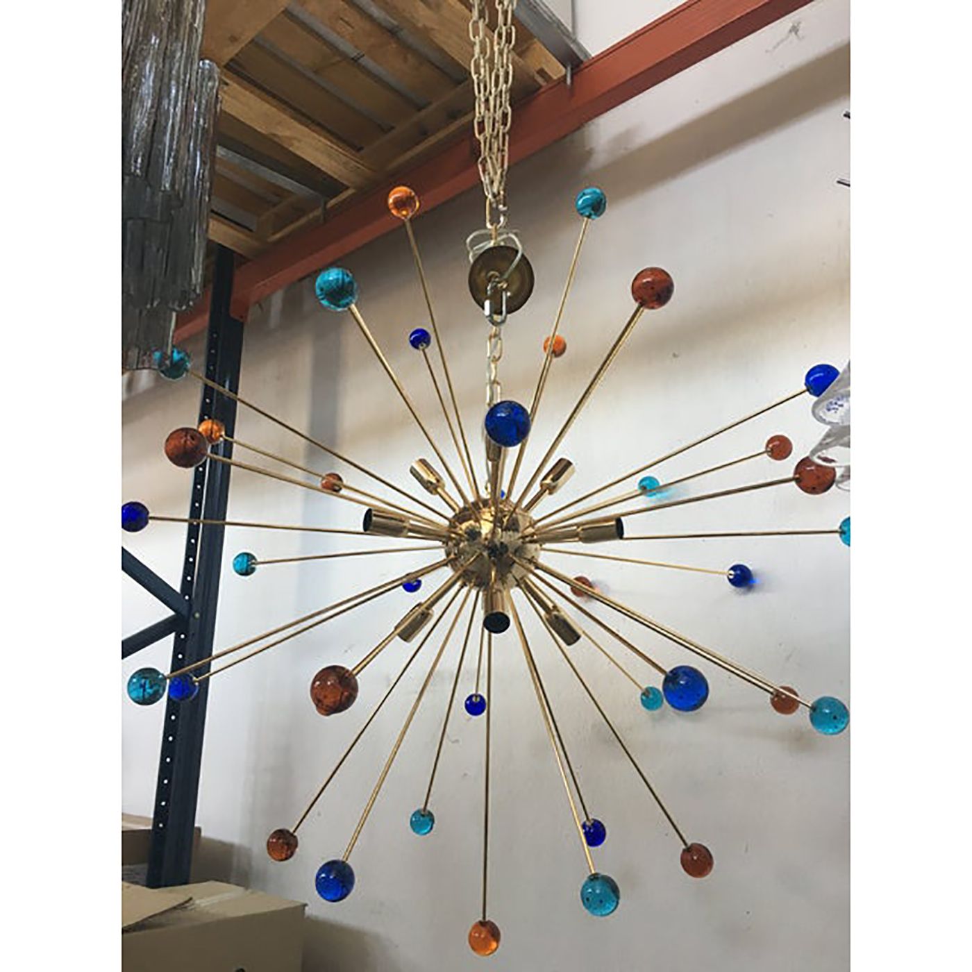 Italian Multicolored “Star” Murano Glass Sputnik Chandelier