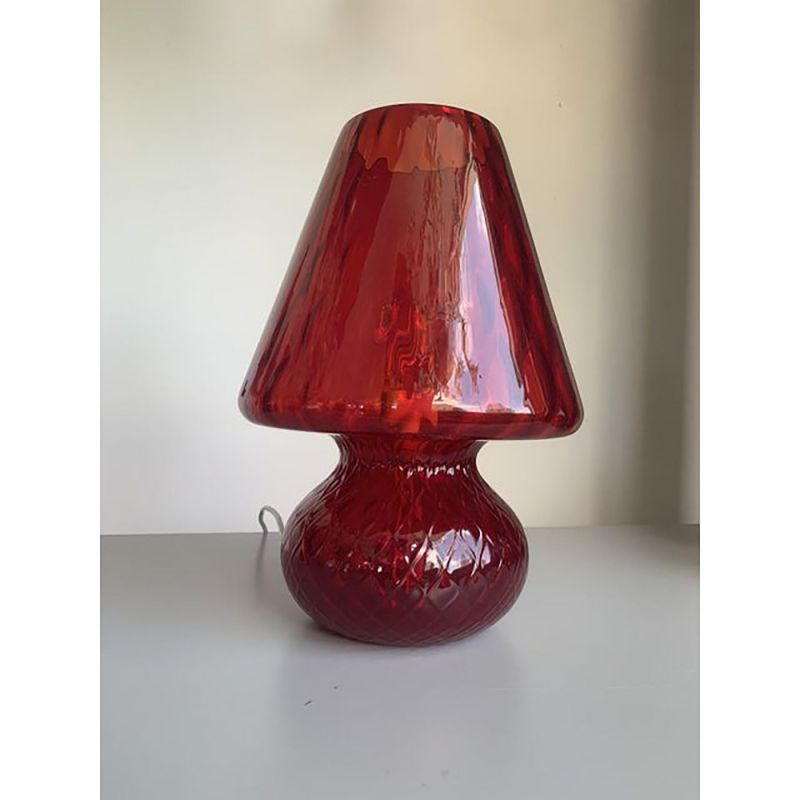 Table Lamp in red Murano glass with particular diamond processing "ballotton".