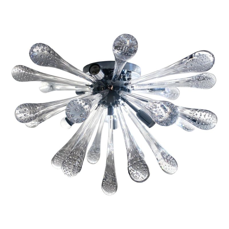 CLEAR MURANO GLASS “DROPS” SPUTNIK FLUSH MOUNT