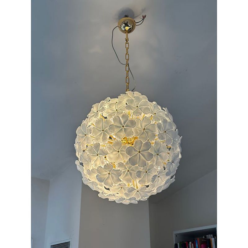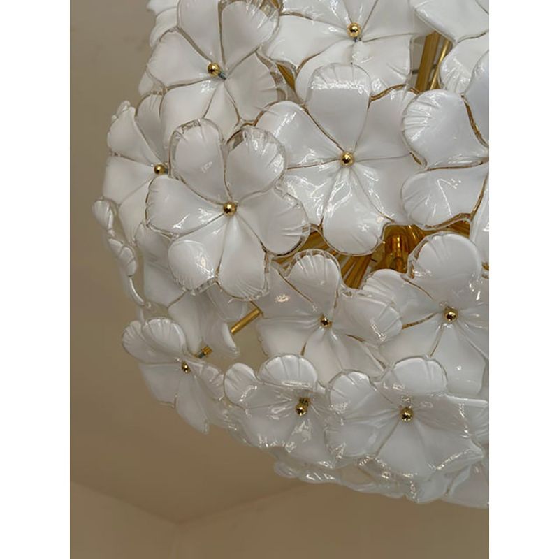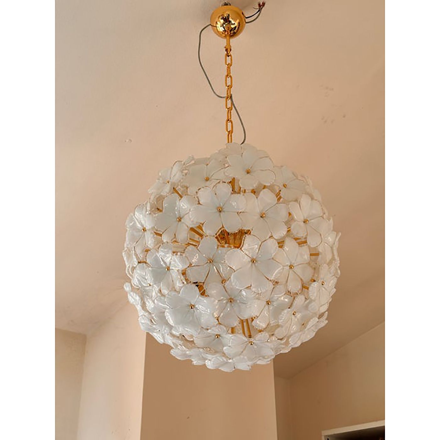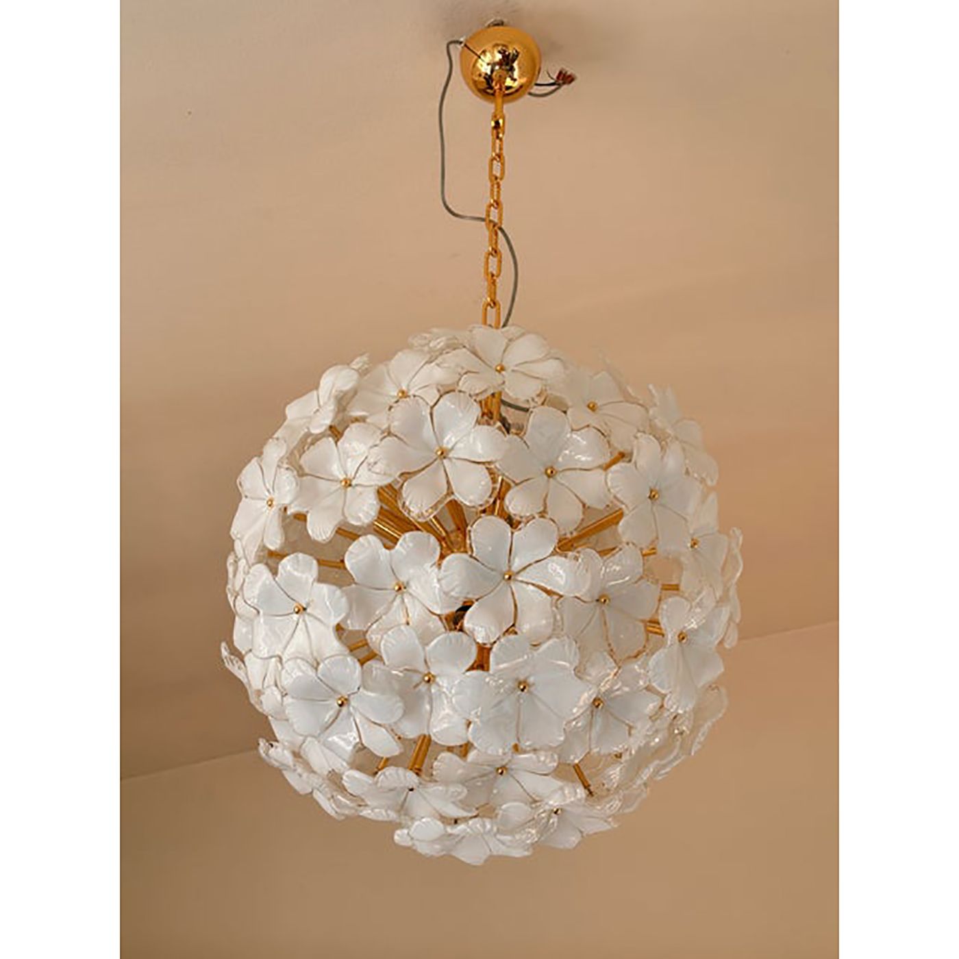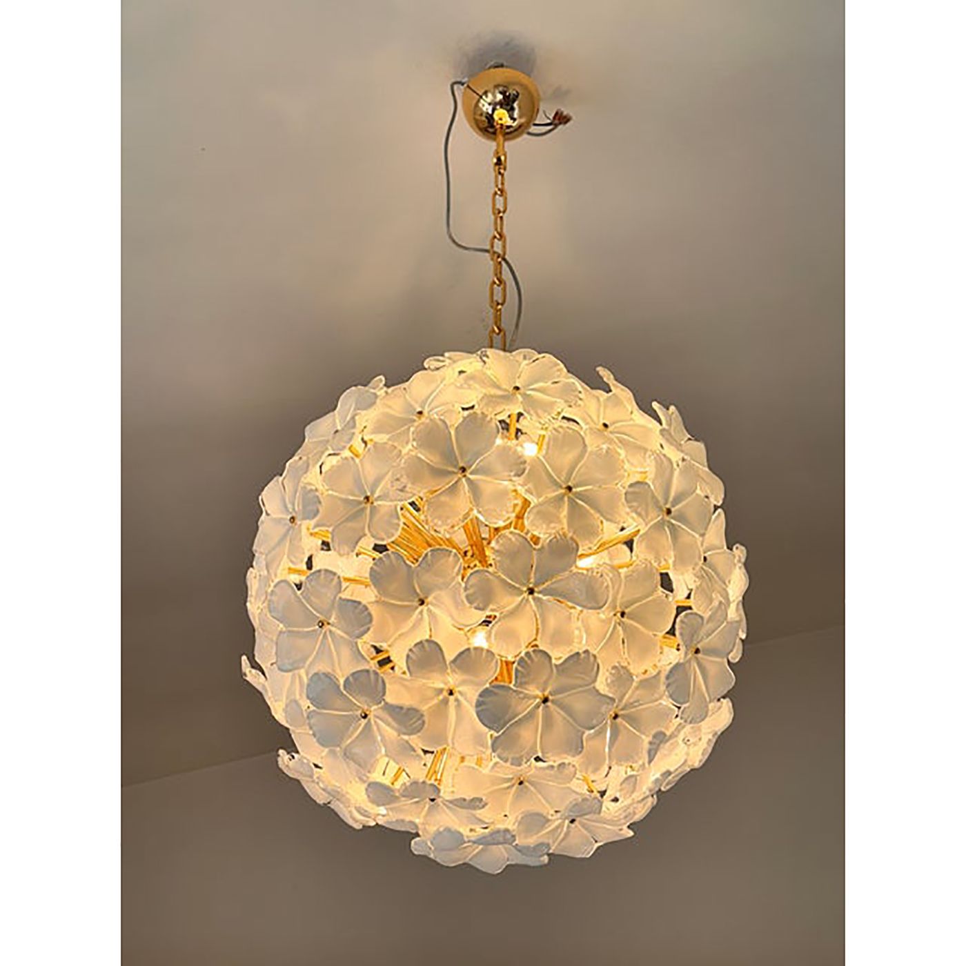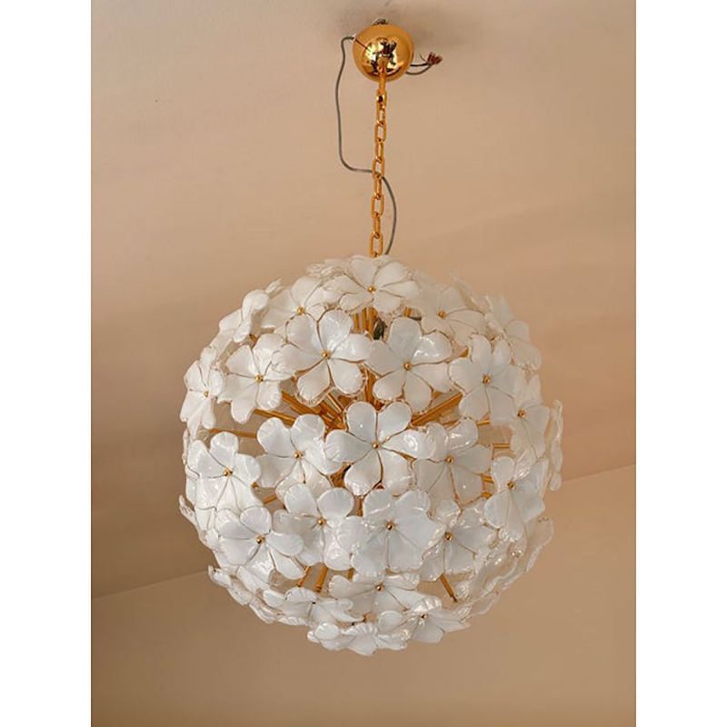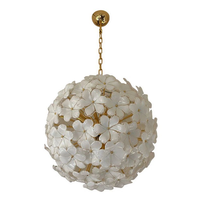 Italian White Flowers Murano Style Glass Sputnik Chandelier