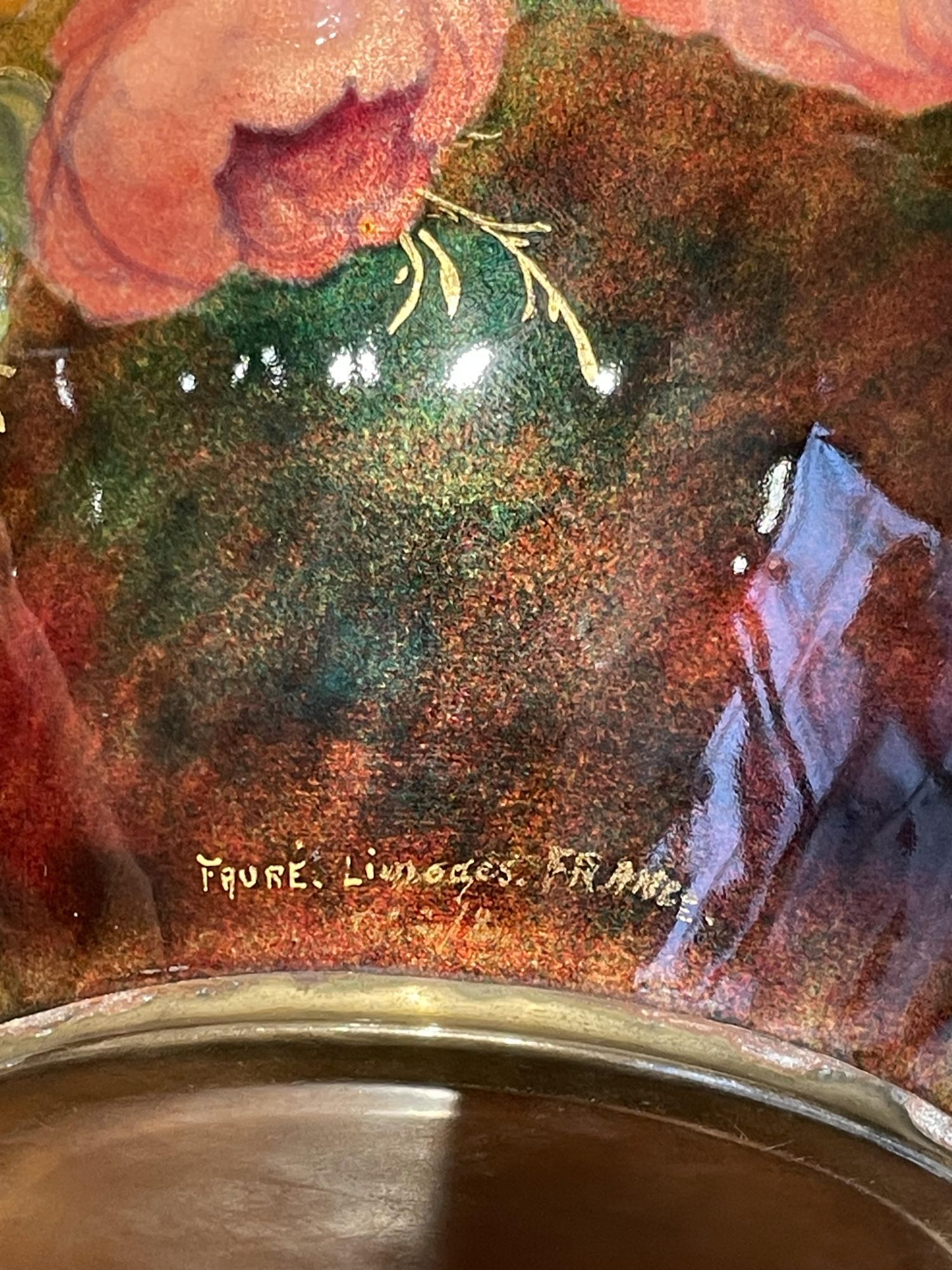 Camille Raymond Fauré (1874-1956) is a French enameler artist, born on November 16th 1874, in Périgueux, and died on October 7th 1956, in Limoges. He is best known for his enamel designs for companies producing Limoges porcelain. Floral and figurative patterns in richly enameled colors are his signature.