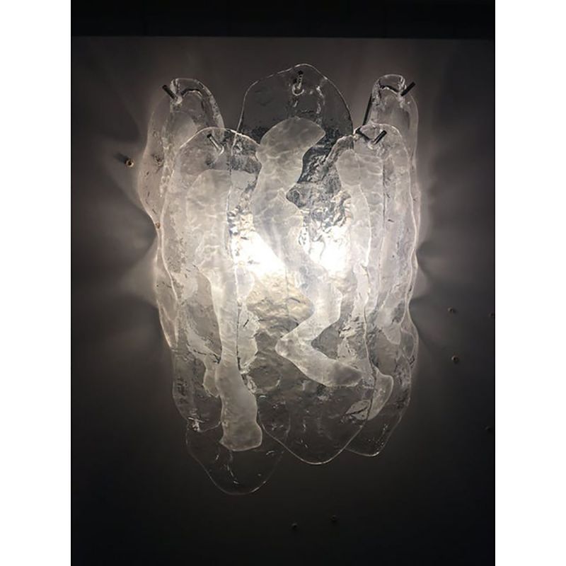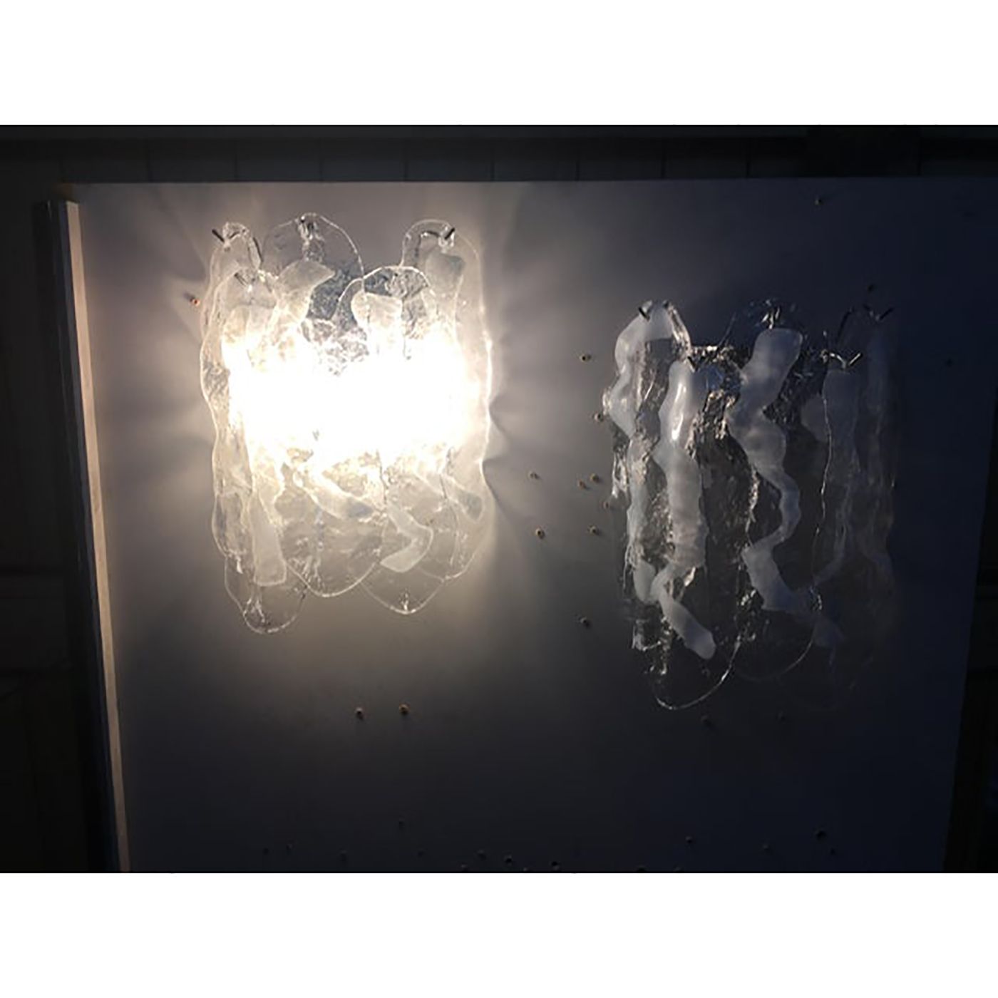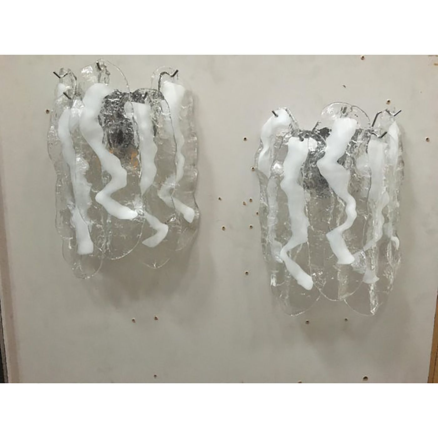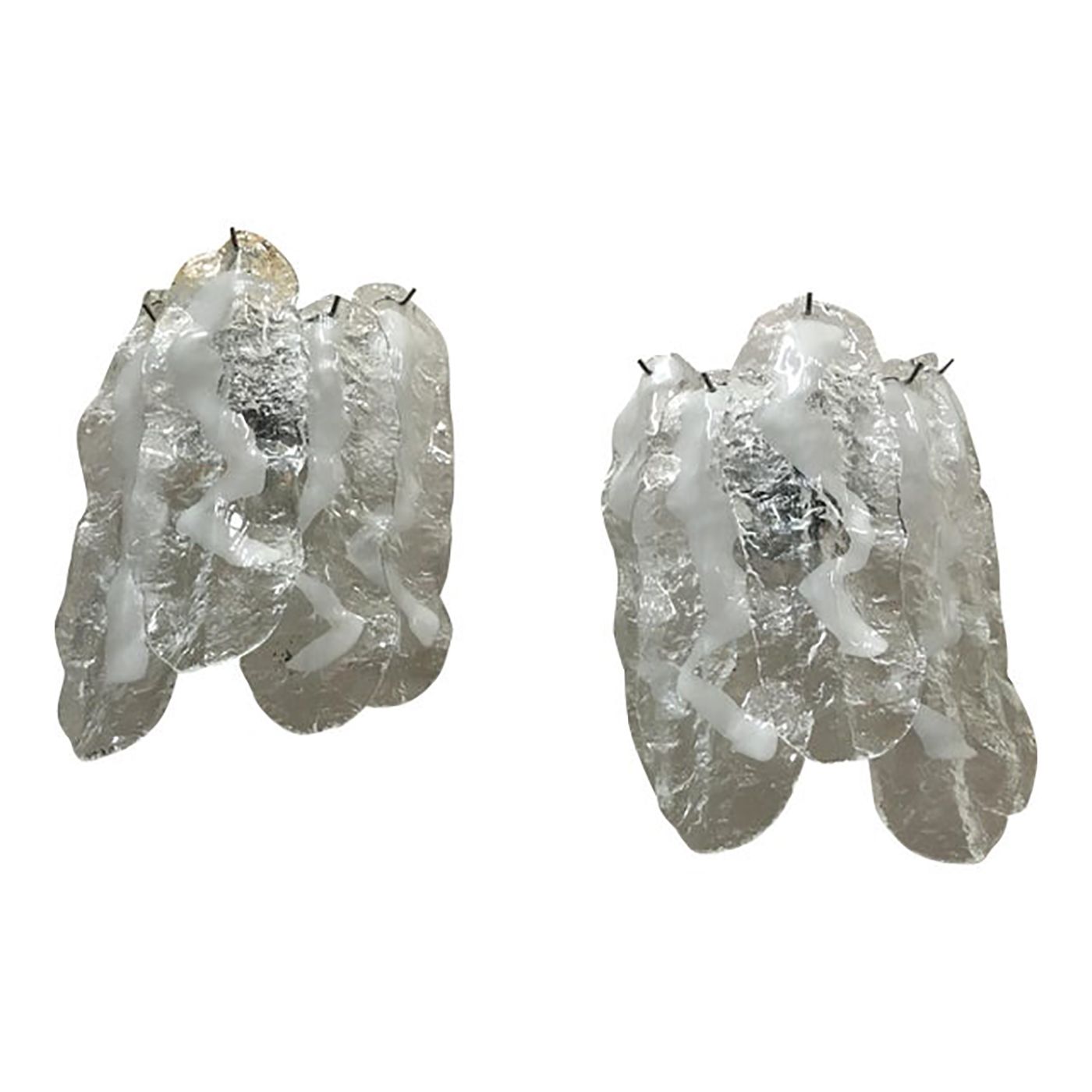Transparent and White “fiamma” Murano Glass Wall Sconces