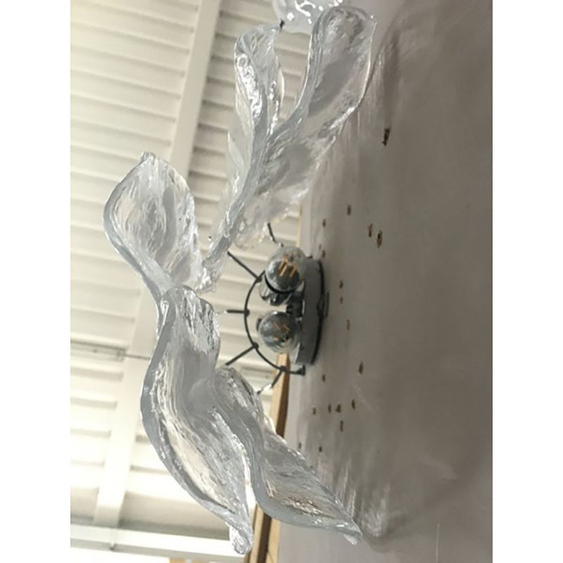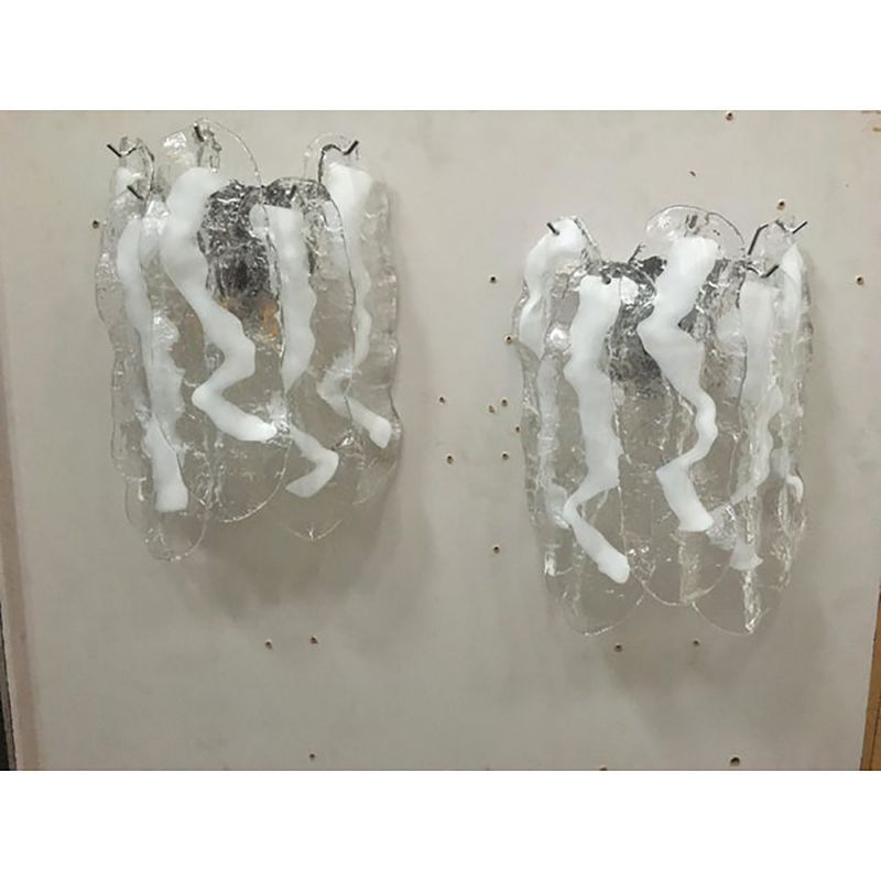 Lot of 2 Transparent and White “Fiamma” Murano Glass Wall Sconces