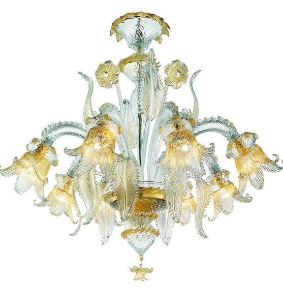 Traditional venetian Murano glass chandlier , full of hand-made details of blowing glass .