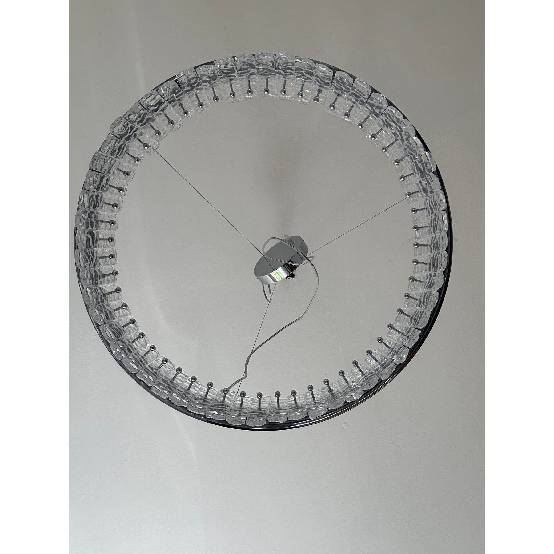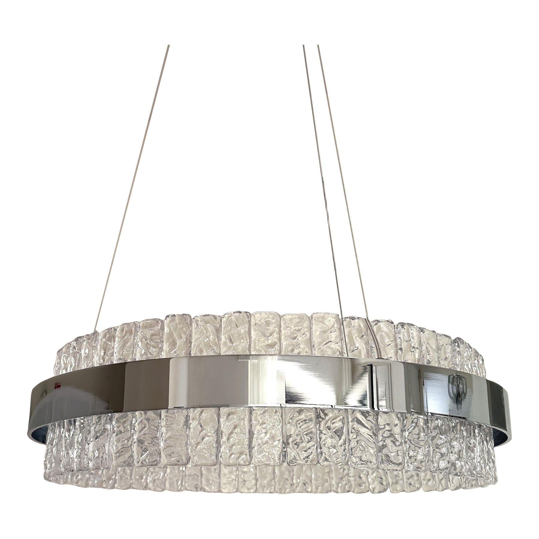 Murano Glass "Ice" Chandelier Hammered Clear Glass in Polish Kromo Ring With Strip Led