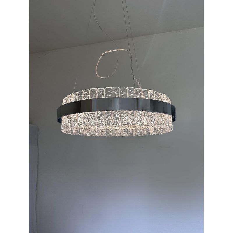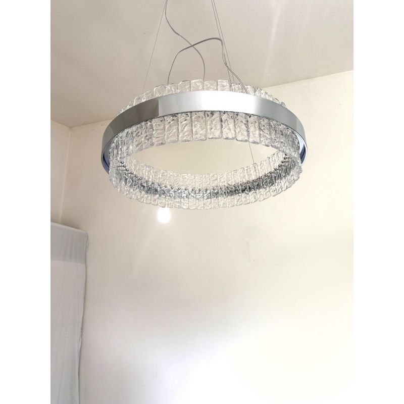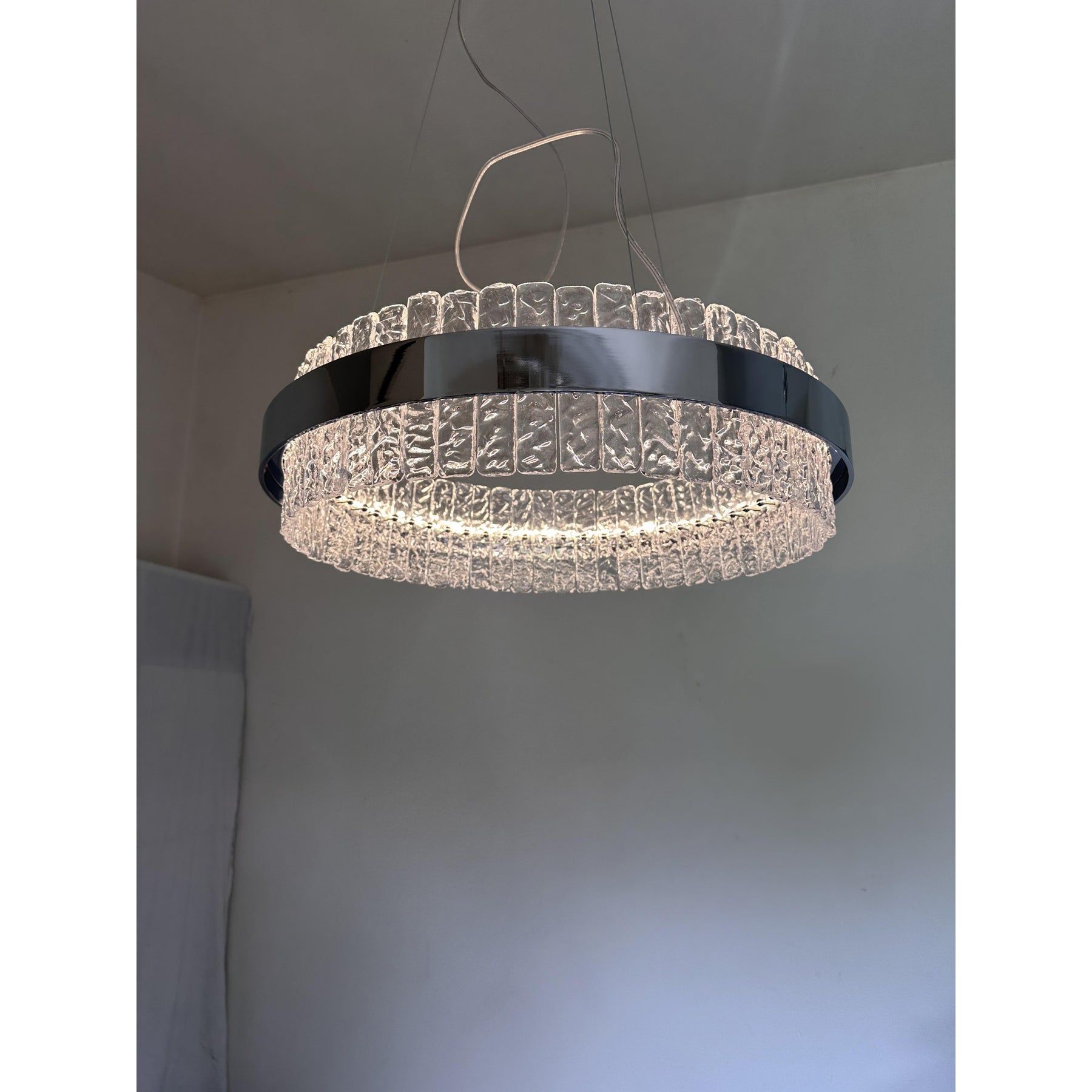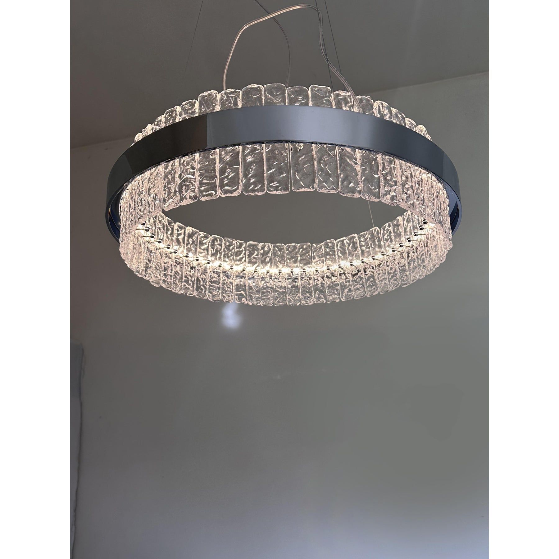 Contemporary polished kromo ring chandelier with hammered clear "Ice" Murano glass With Strip Led.