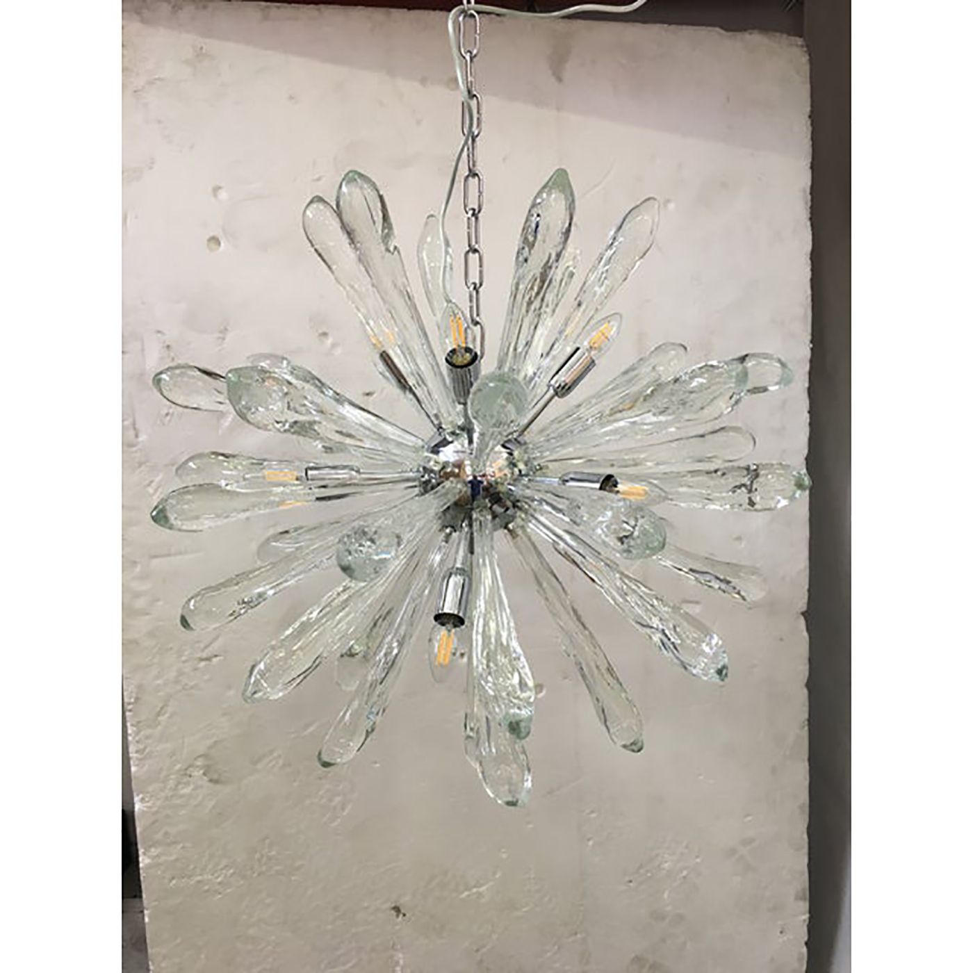 Murano Glass Ice Clear Sputnik Italian Chandelier