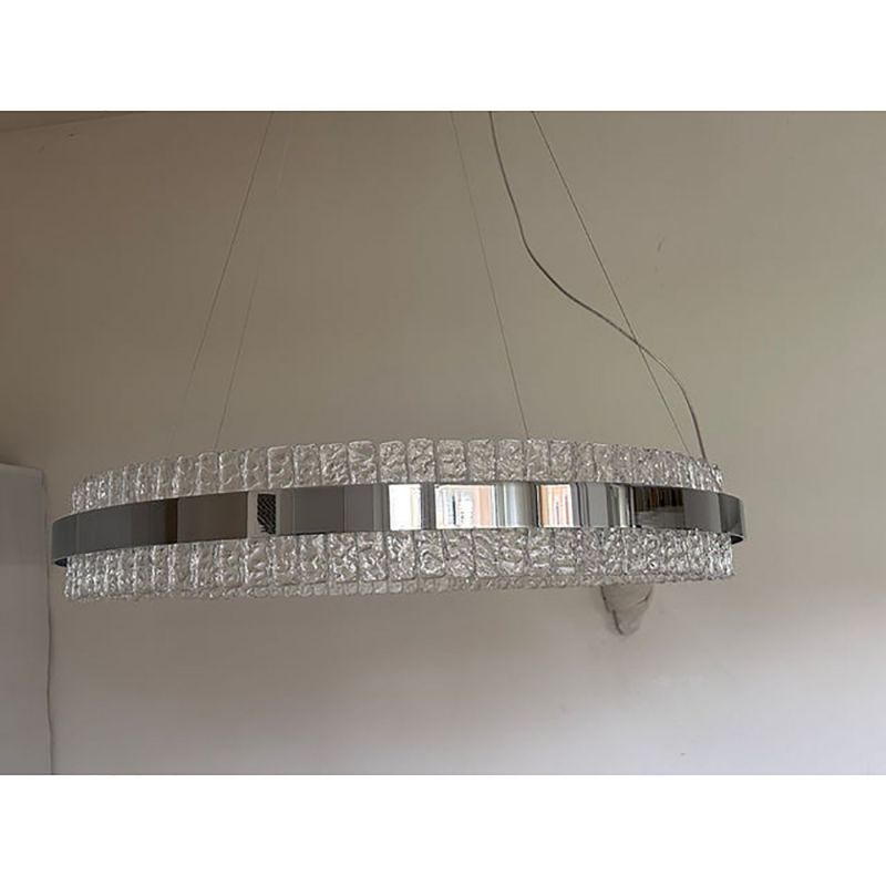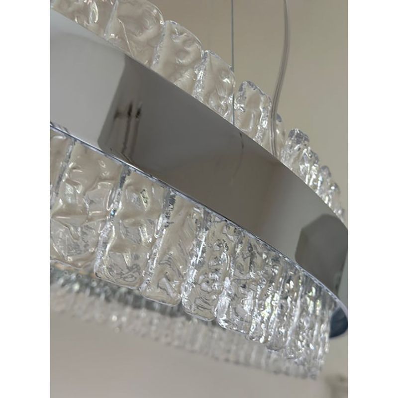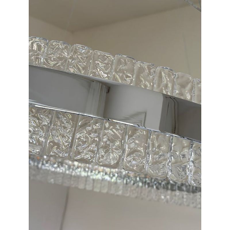 Murano Glass Pendant Chandelier Hammered Clear Glass in Polish Kromo Ring With Strip Led