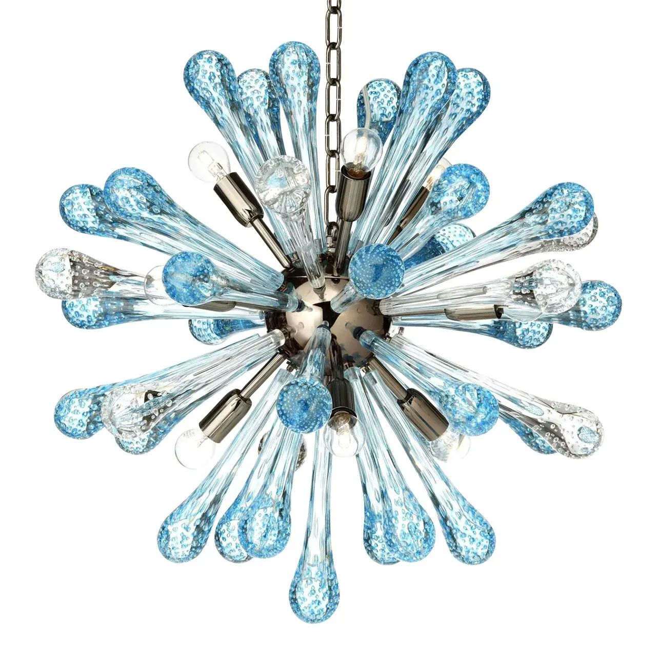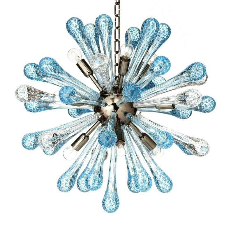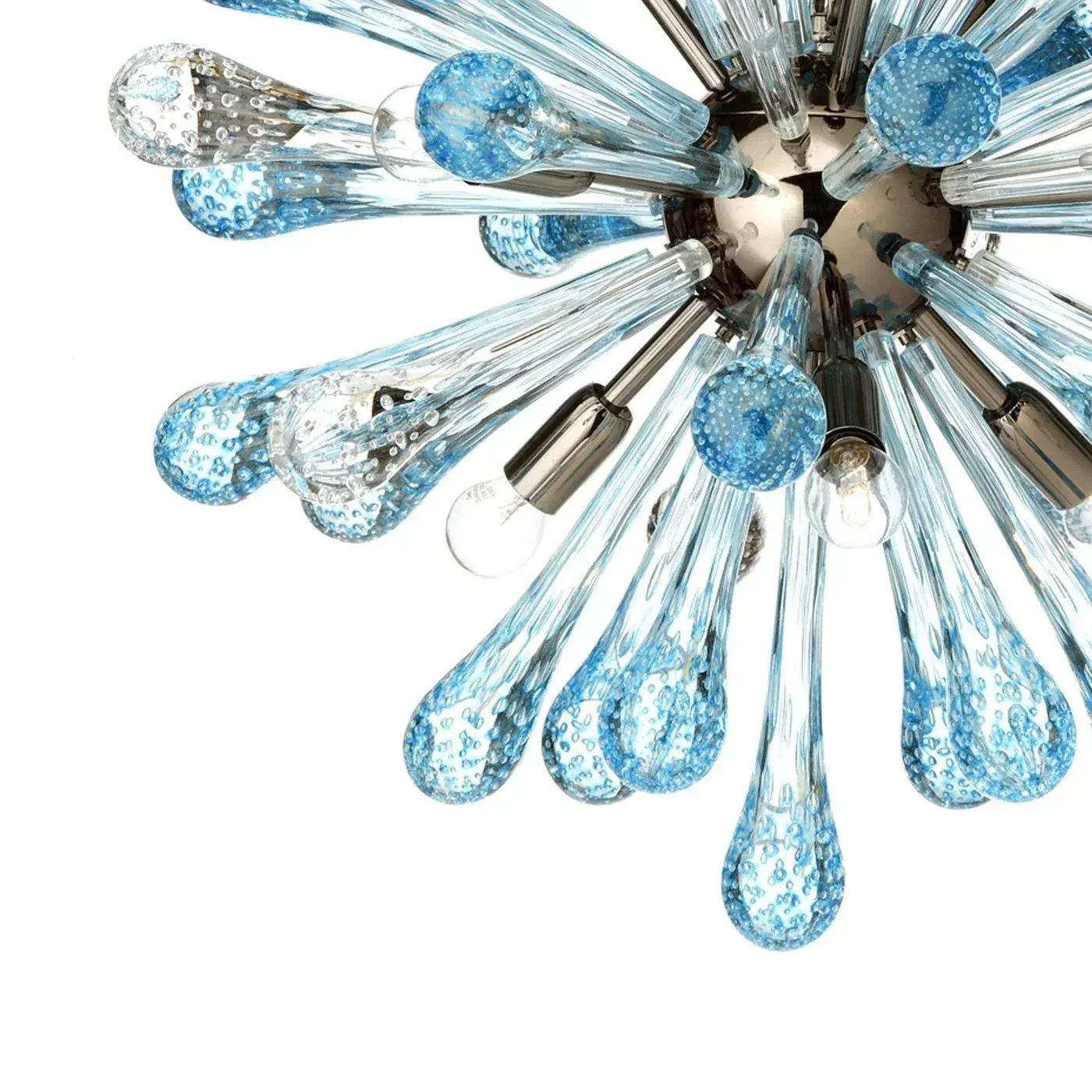 Murano Glass Sputnik Chandelier Featuring Light Blue and Clear Air Drops