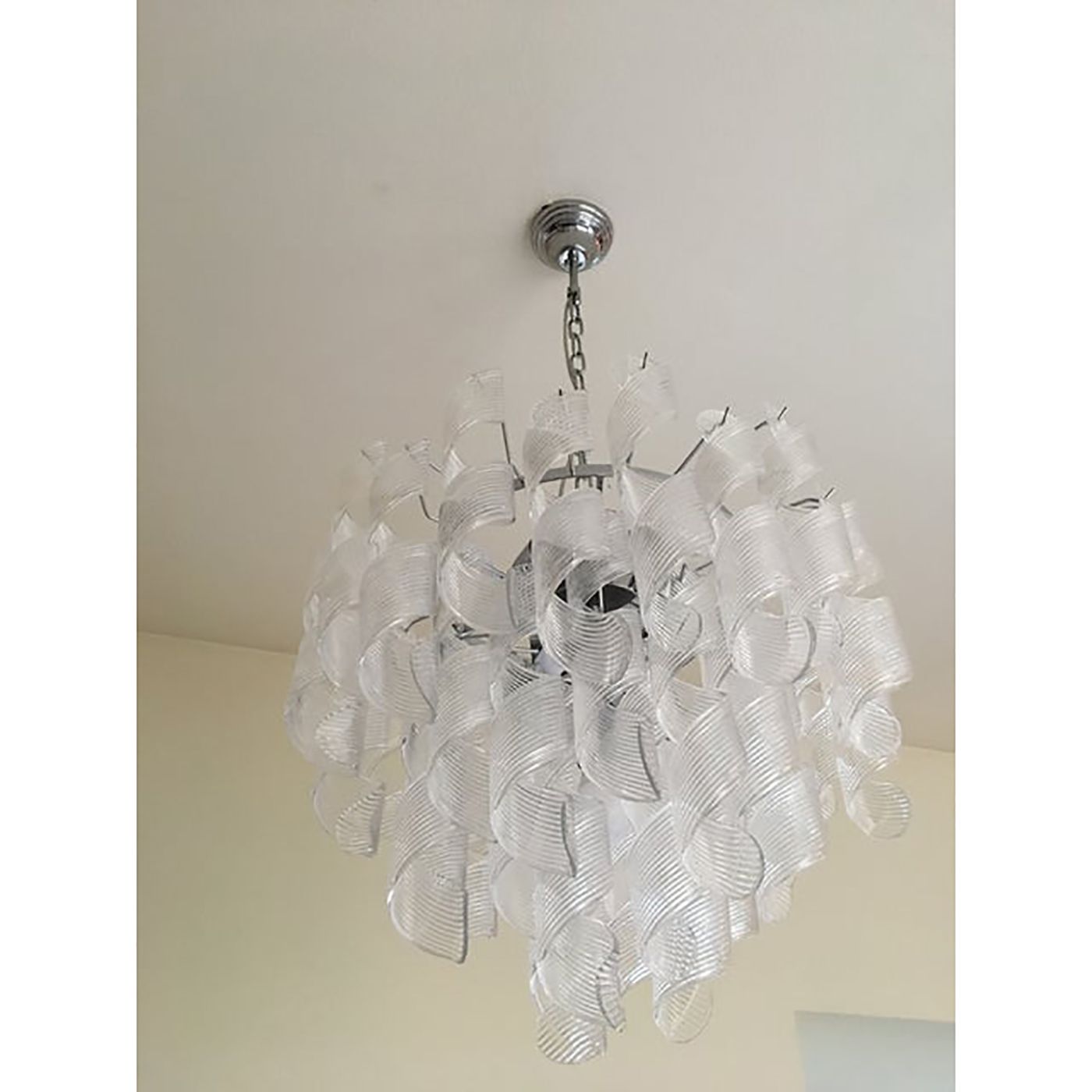 Metal frame in kromo and all clear glass , italian Murano glass made in Venice Italy