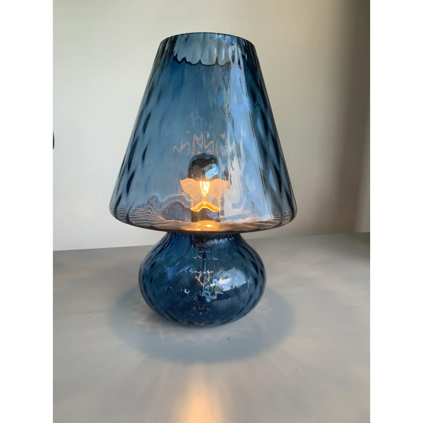 Murano-Inspired Blue Glass Lamp with “Ballotton” Texture