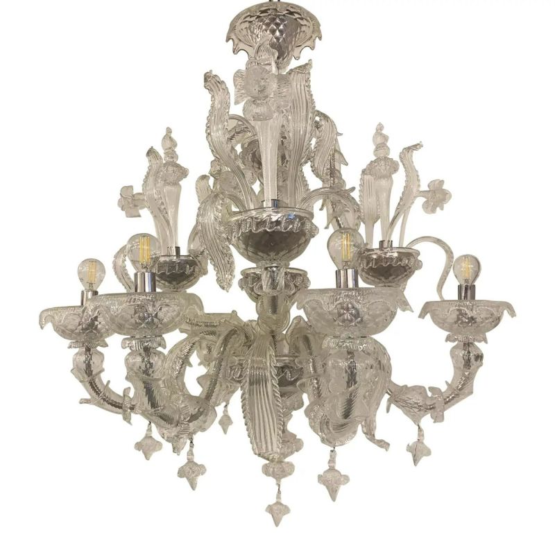 Murano-Style Chandelier in Transparent Glass