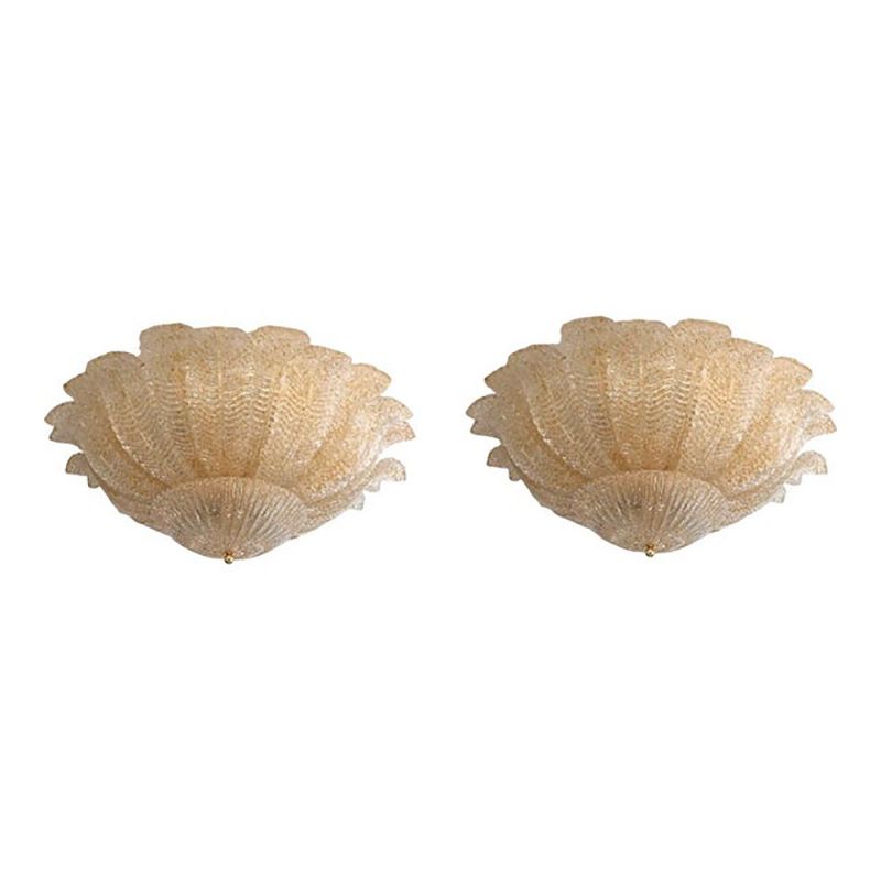 Murano Style Glass Sputnik Chandelier Flush Mounts, Mazzega Style - a Pair