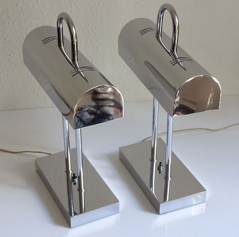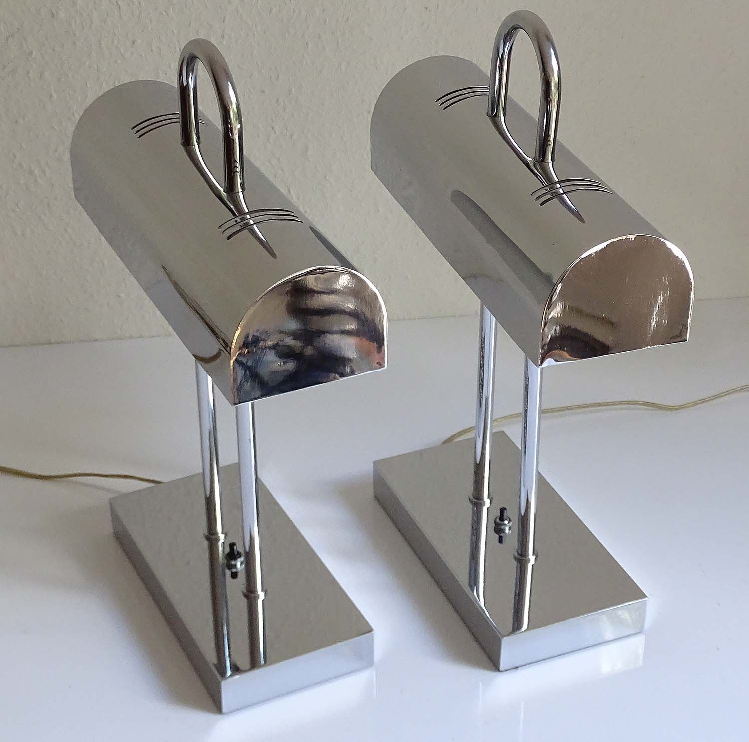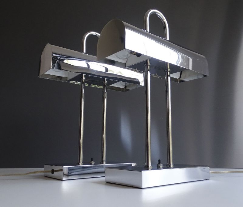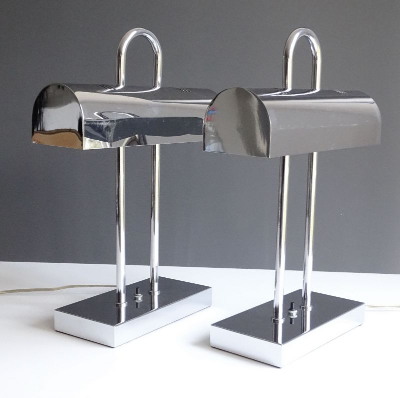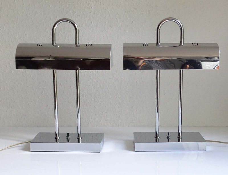 Pair of MidCentury Yamada Shomei Table Lamps, 1960s, Chrome