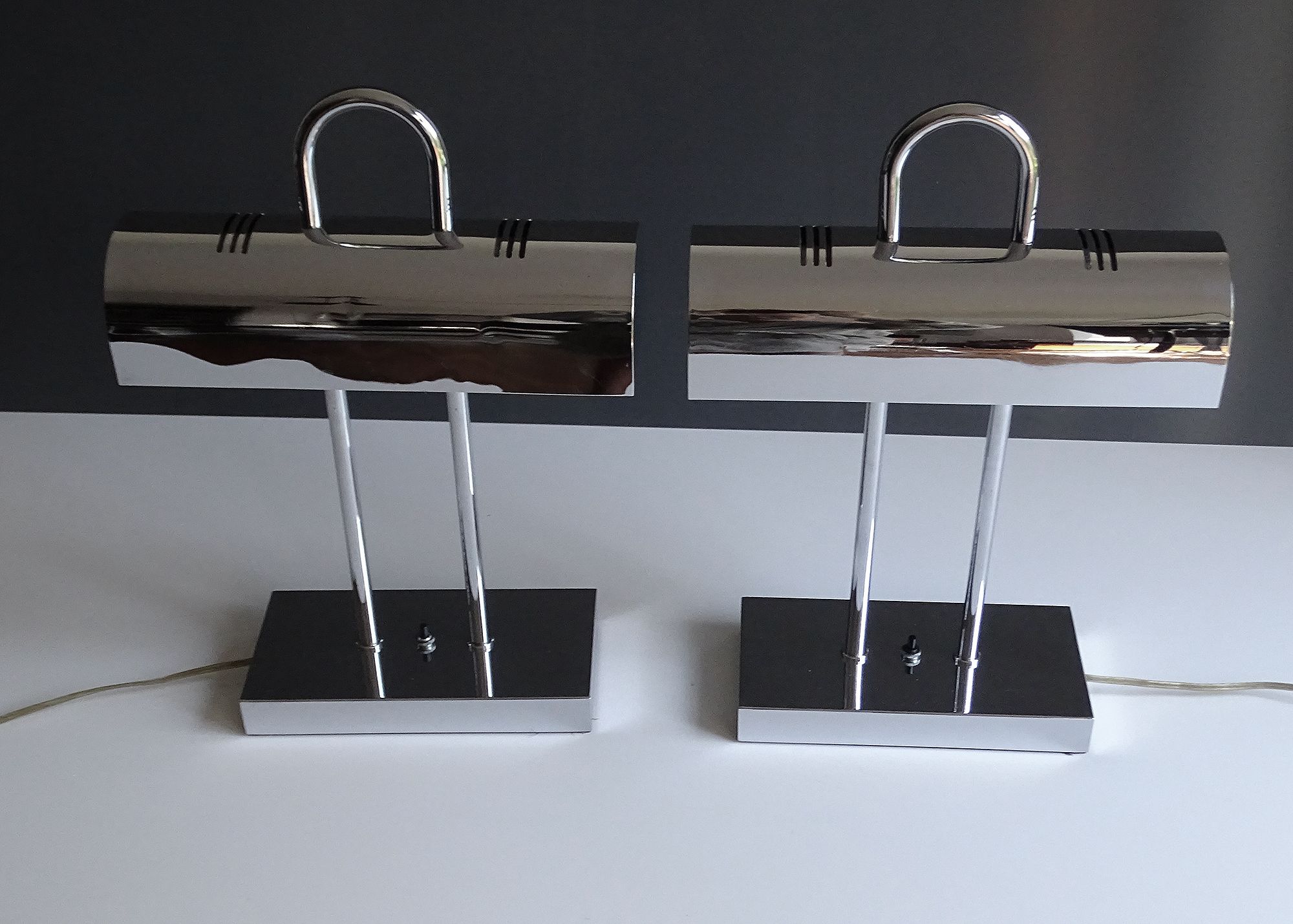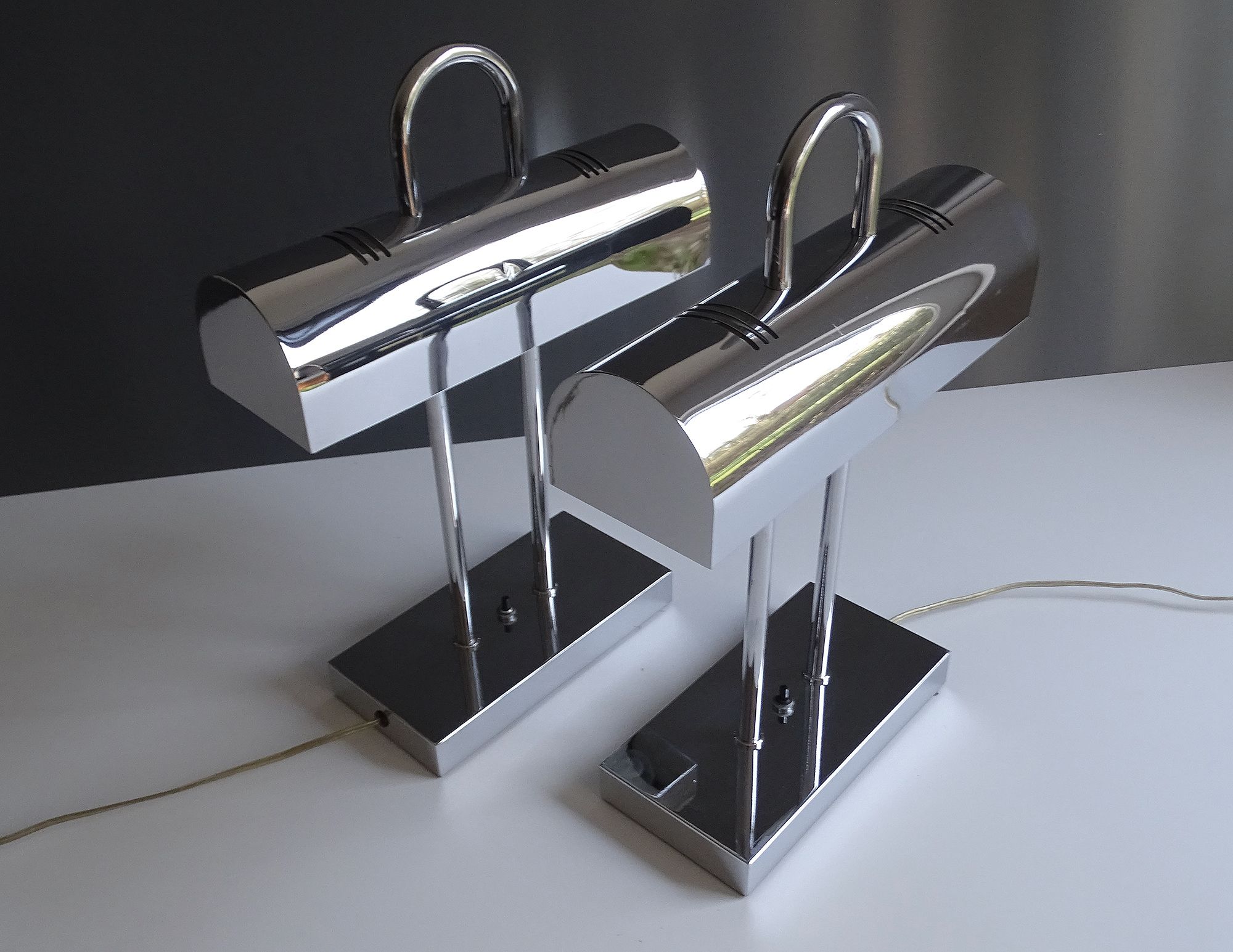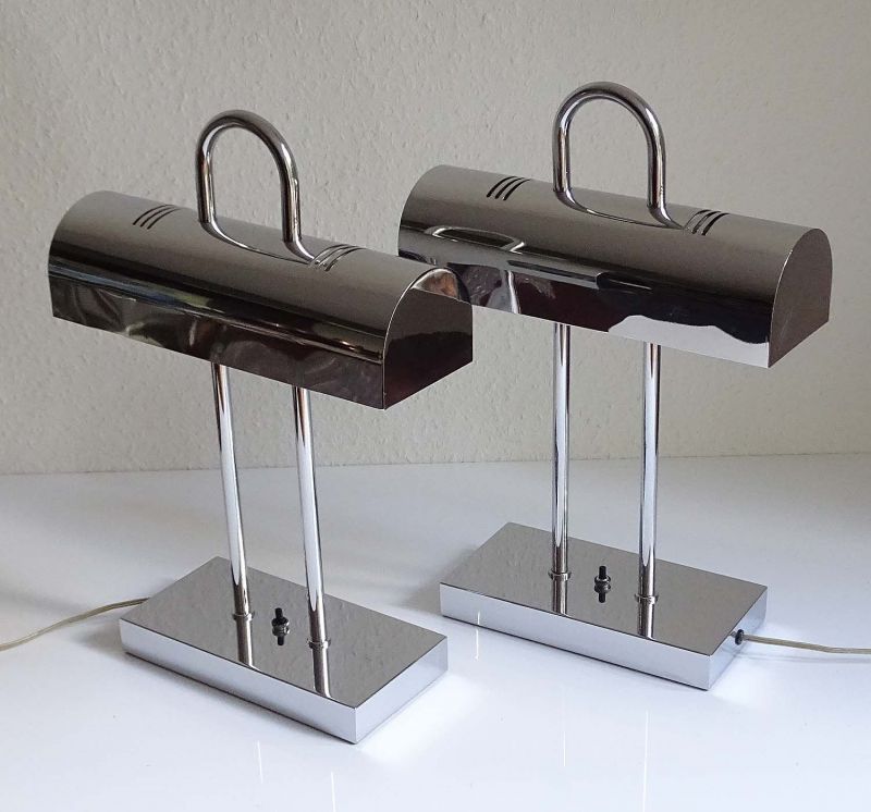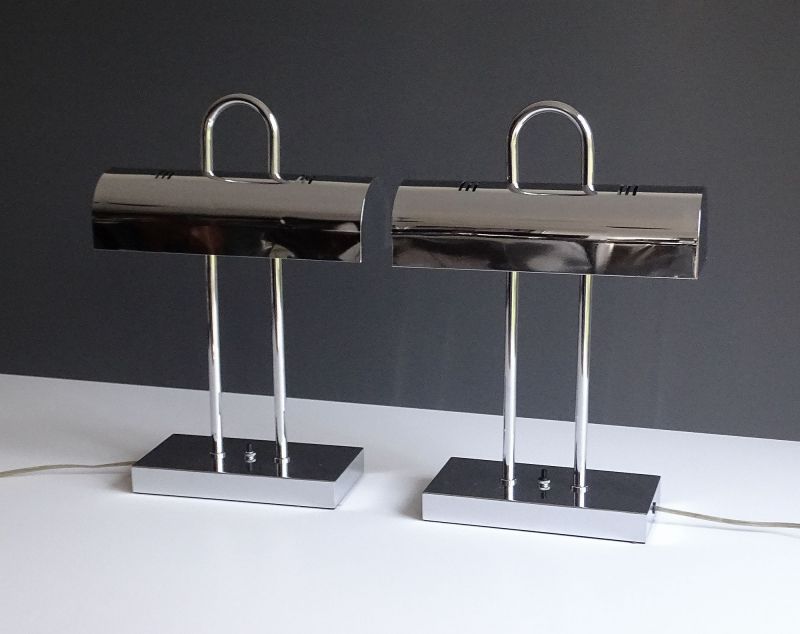 Pair of MidCentury Yamada Shomei Table Lamps, 1960s, Chrome