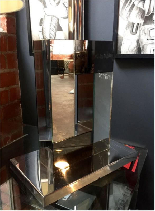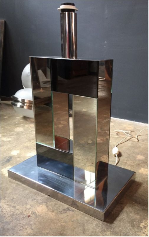 Sandro Petti 1970s Italian Modern Chrome and Mirror Table Lamp, 1970