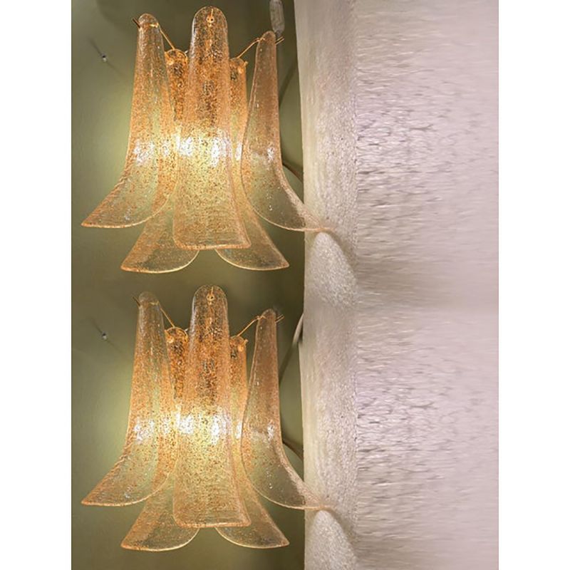 Set of 2 Clear-Gold “Petali” Murano Glass Wall Sconces in Vintage Style