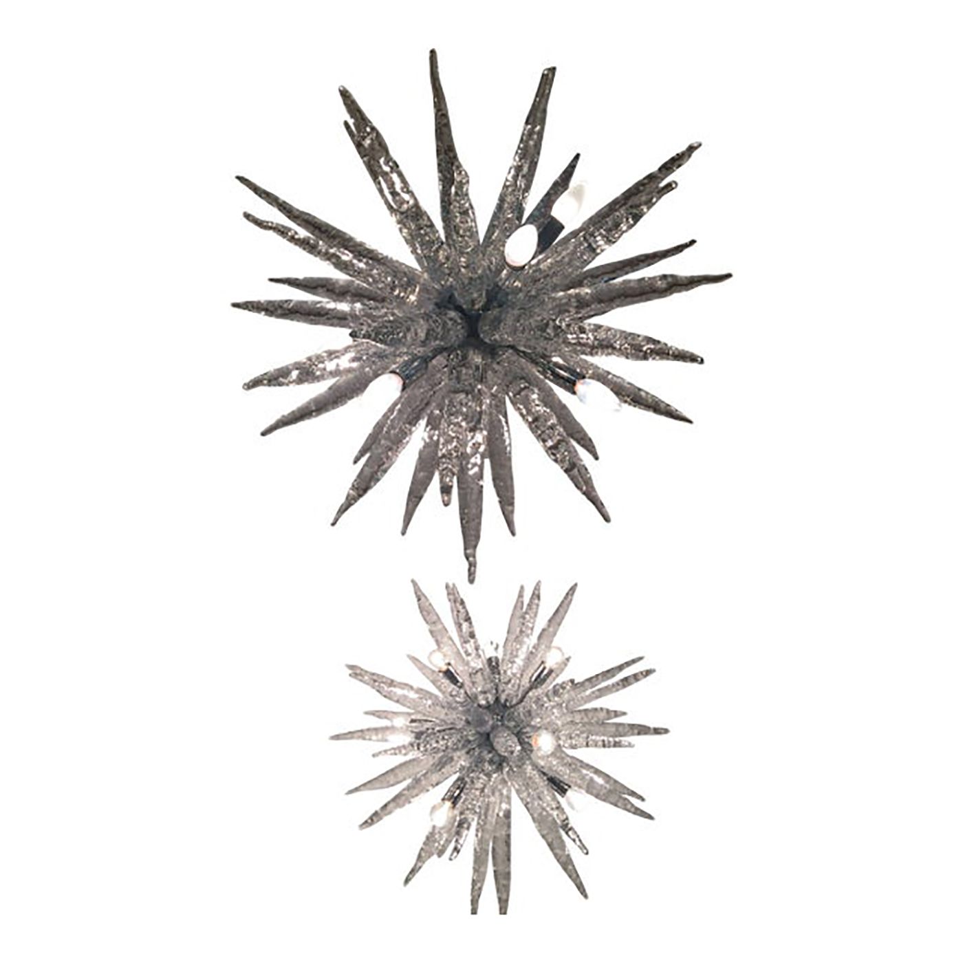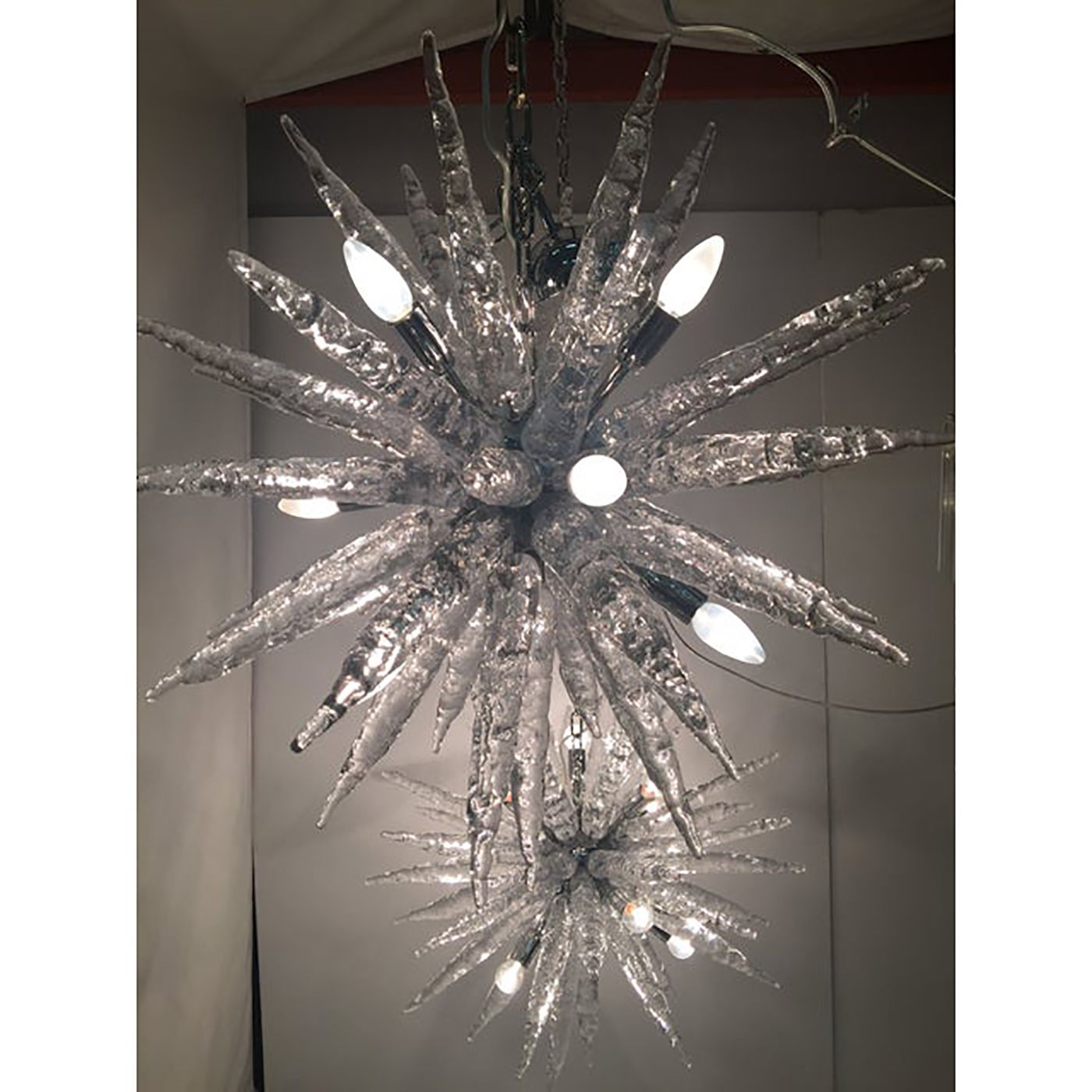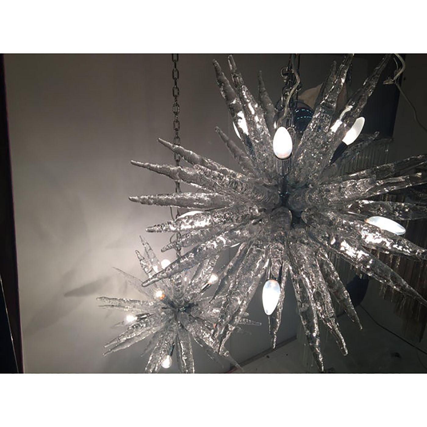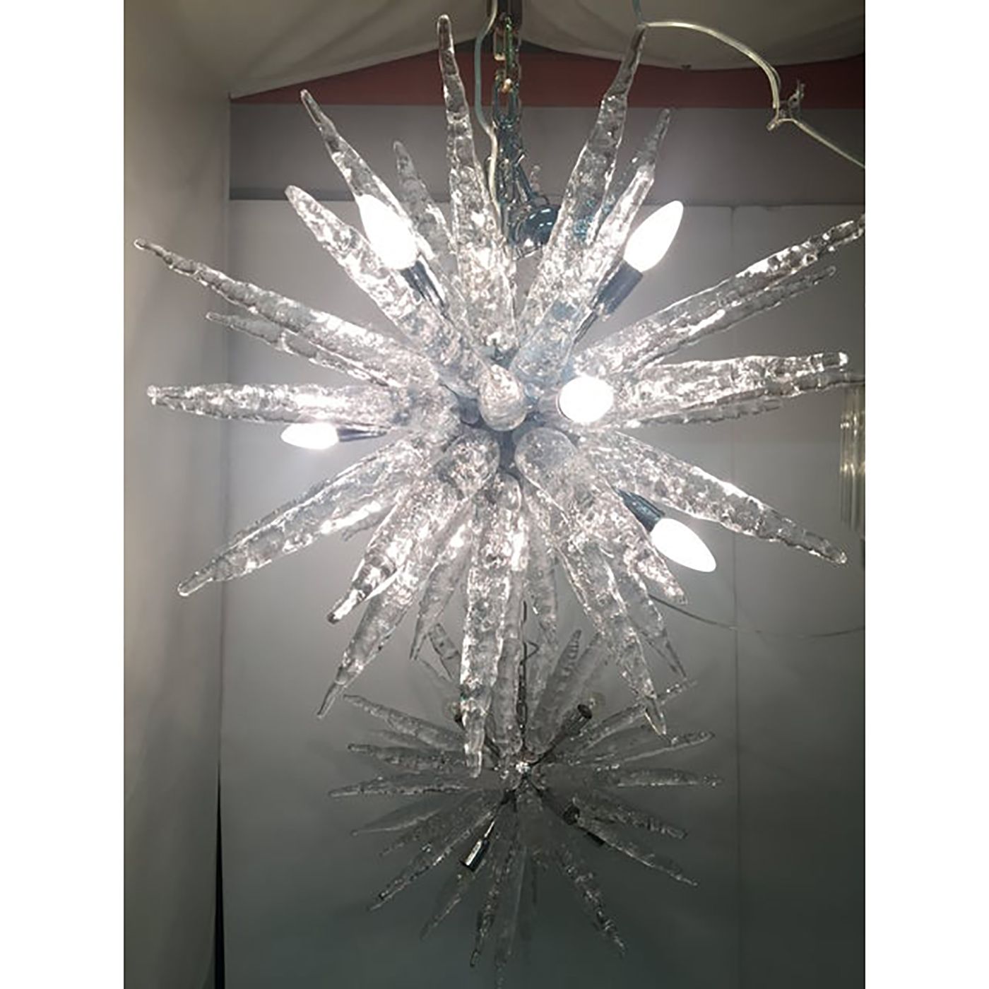 Set of 2 Murano Glass Ice Clear Sputnik Italian Chandelier