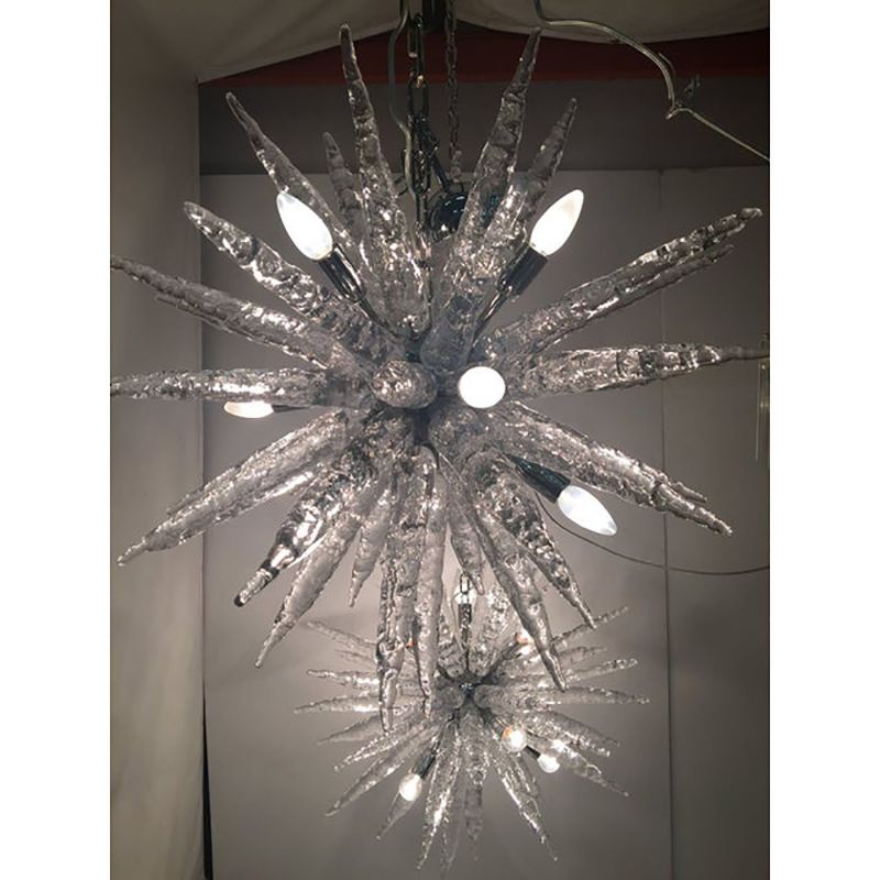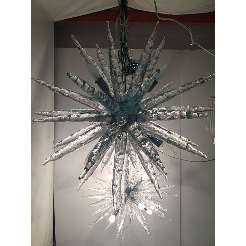 Lot of 2 Murano Glass Ice Clear Sputnik Italian Chandelier