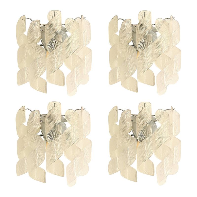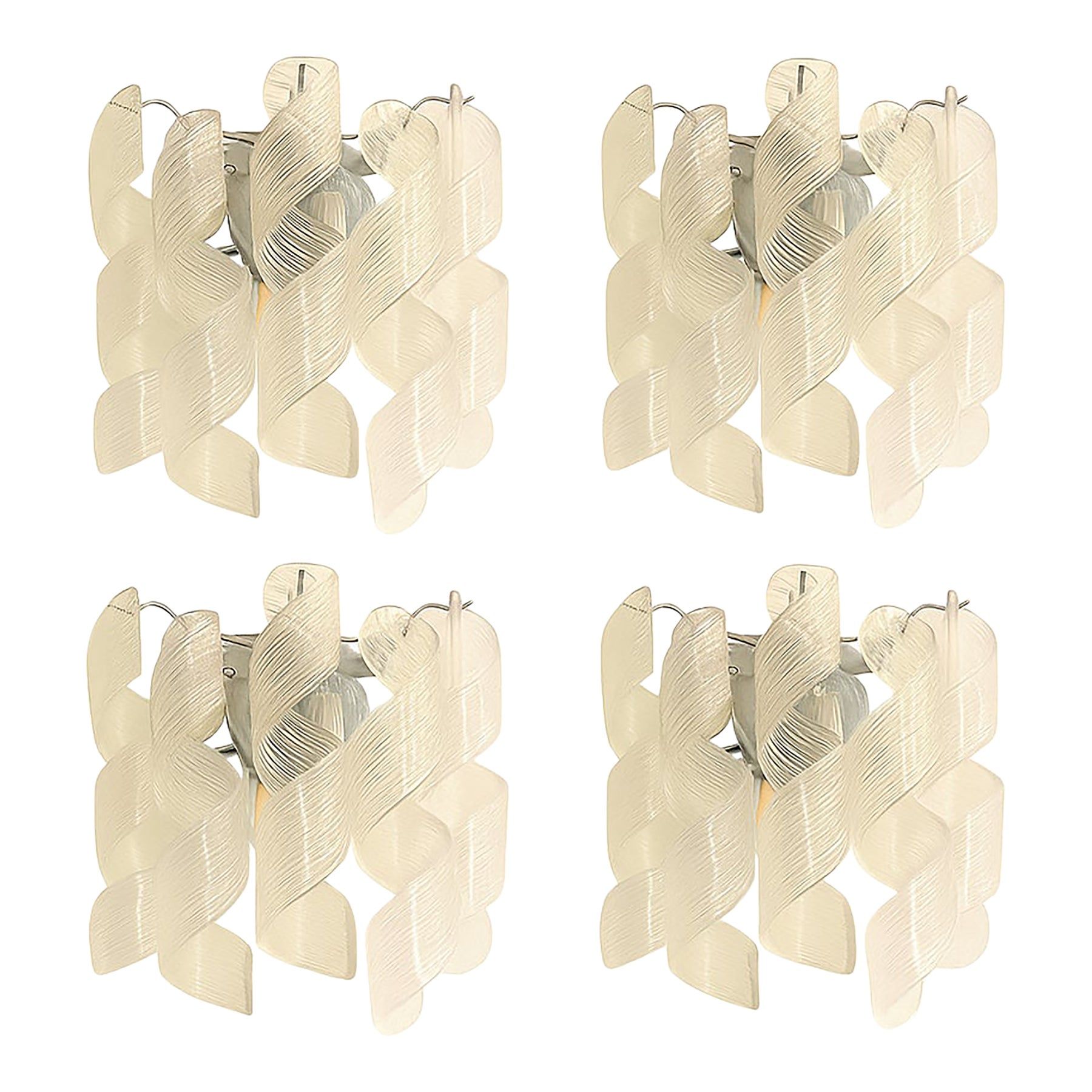 Set of 4 Transparent “Ricci” Murano Glass Wall Sconces in Mazzega Style Wall Lights