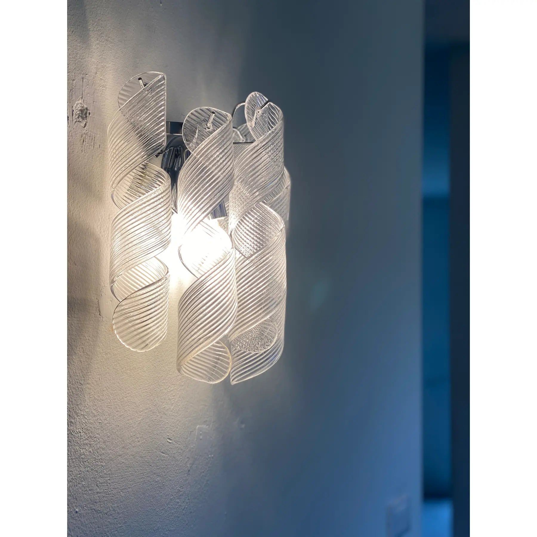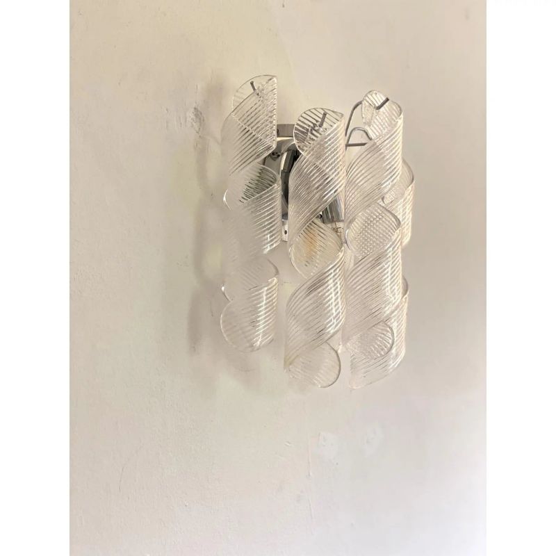 Set of 6 Transparent “Ricci” Murano Glass Wall Sconces in Mazzega Style Wall Lights