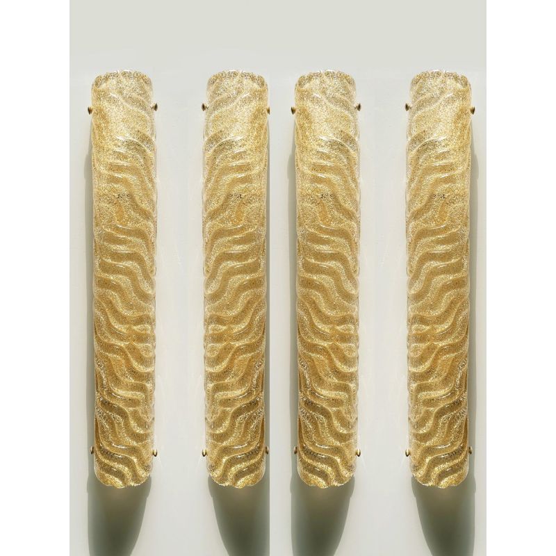 Set of four Rectangular wall sconces made in gold "graniglia" of Murano glass.