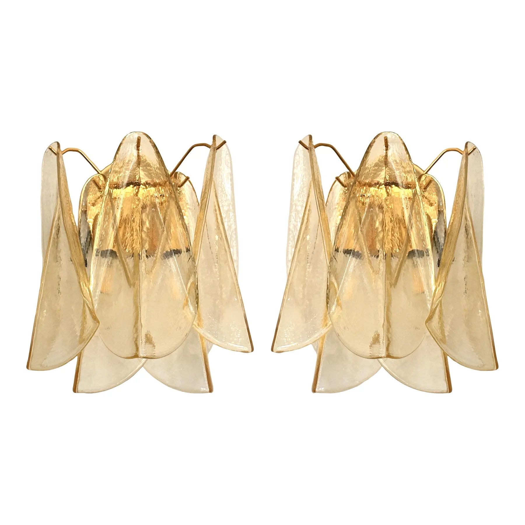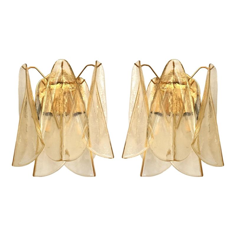 Set of Two Amber “Rondini” Murano Glass Gold Wall Sconce in Mazzega Style