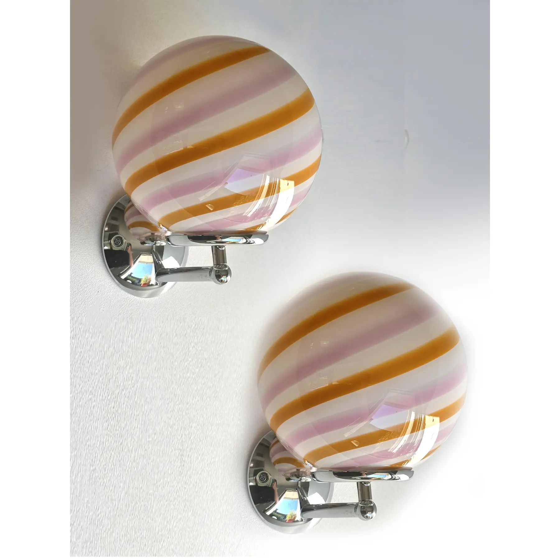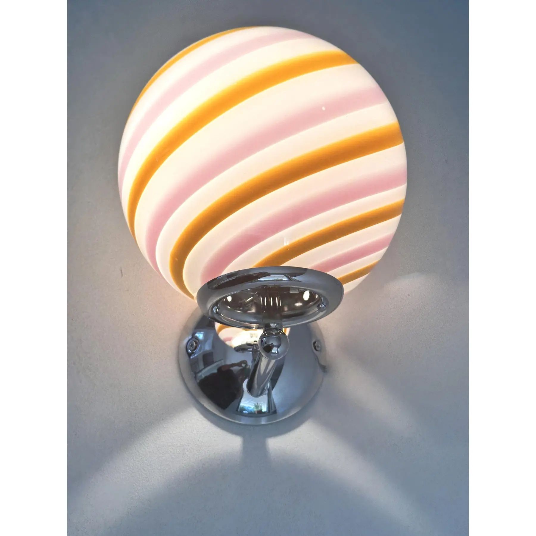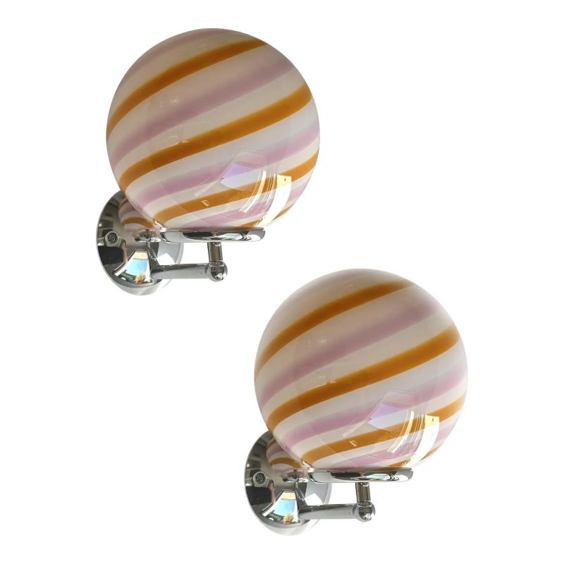 Luxury modern milky-white sphere with amber and pink swirl in Murano glass .