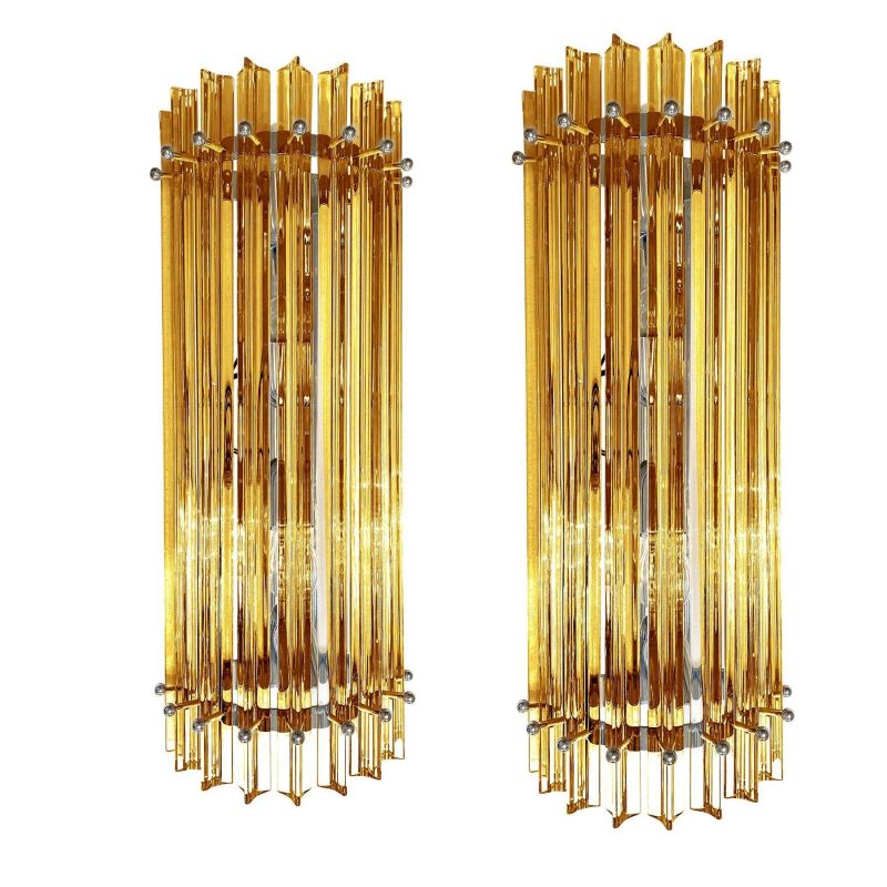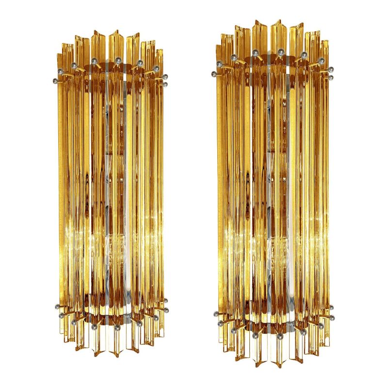 Contemporary amber Triedro Murano Glass Wall Sconces. Set of Two.