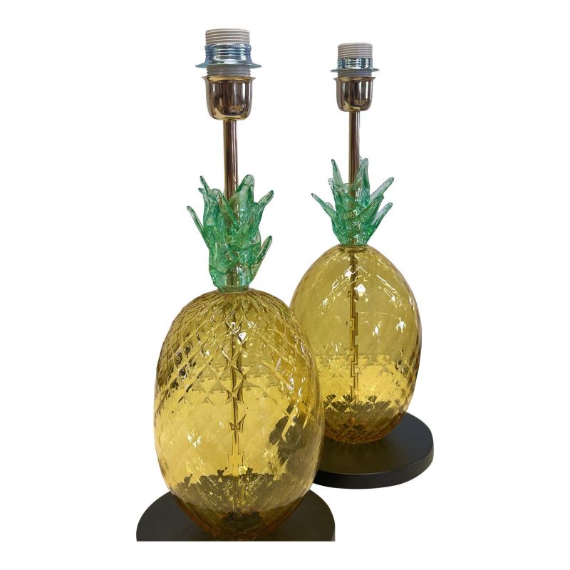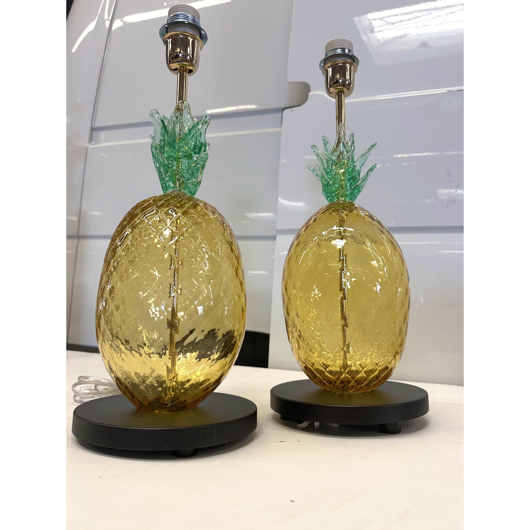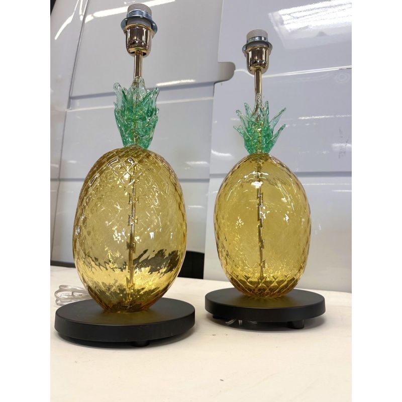 Set of Two Contemporary Italian "Ananas" Murano Glass Table Lamps