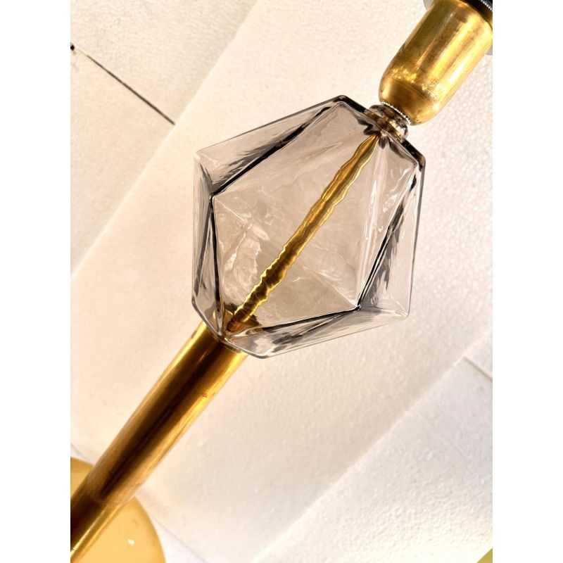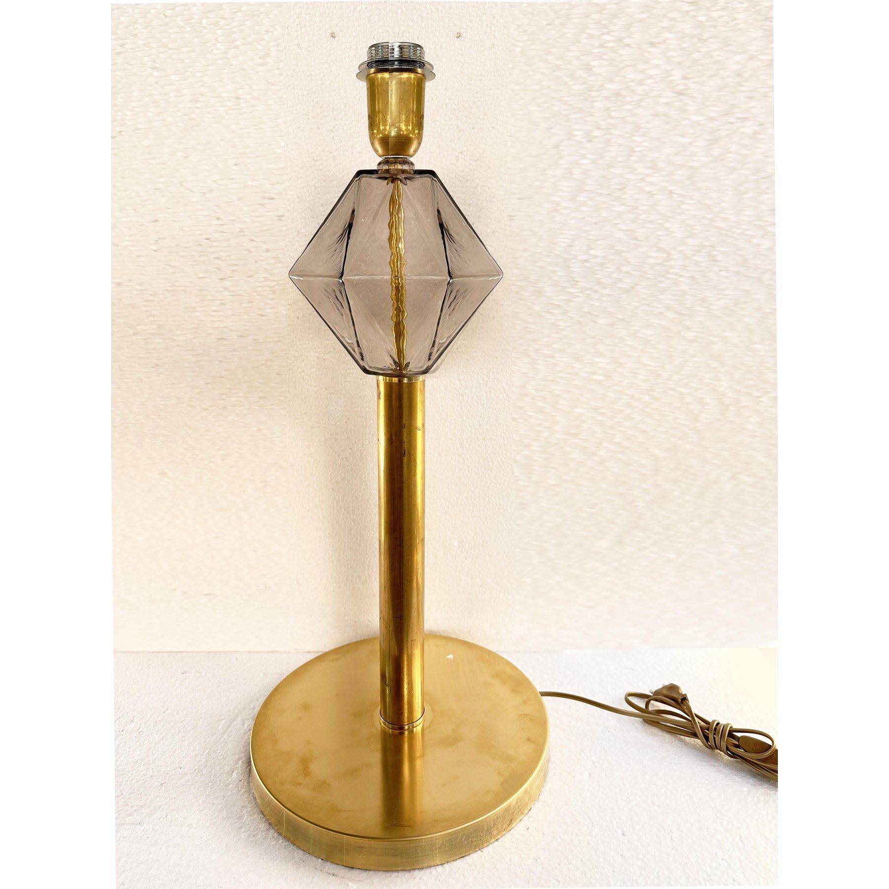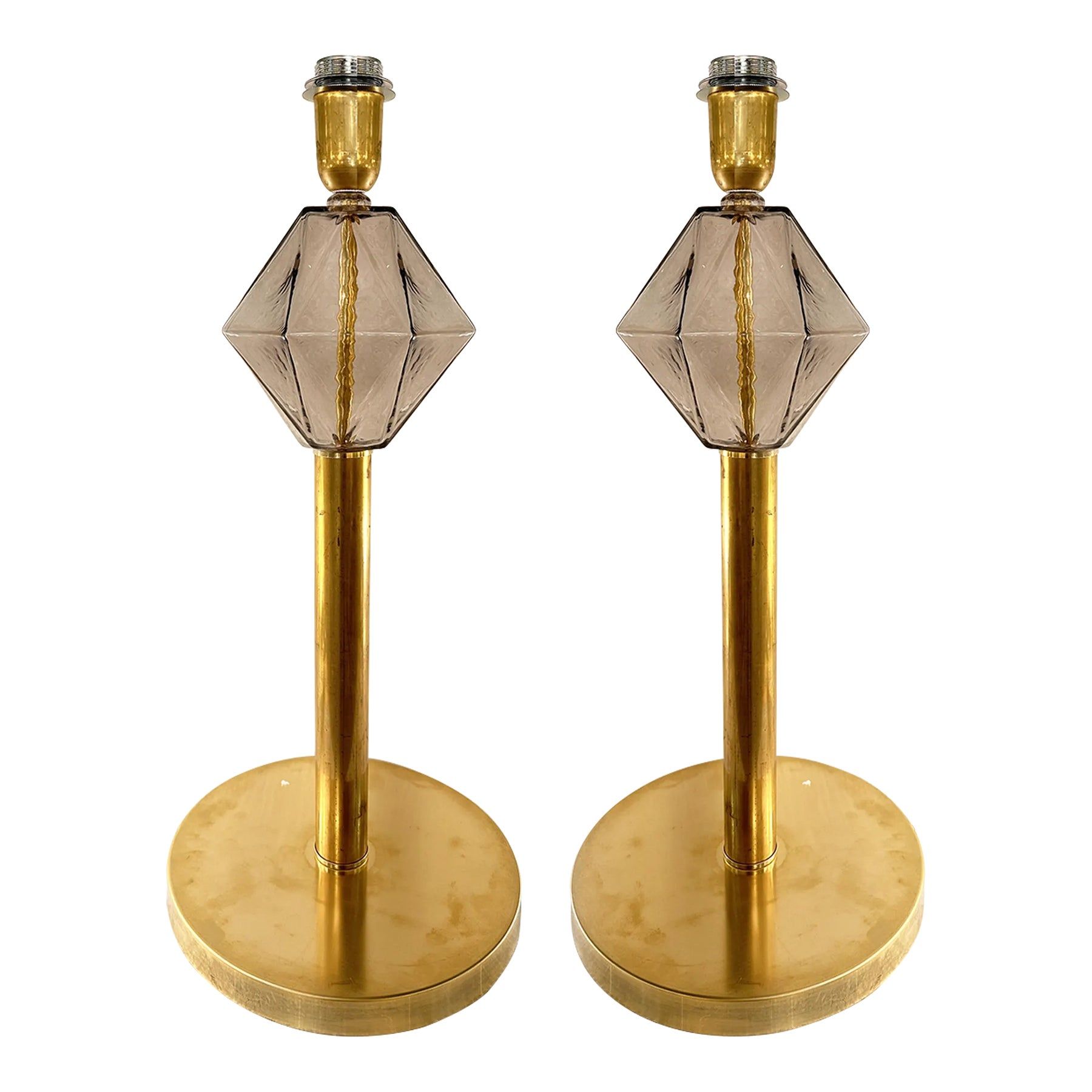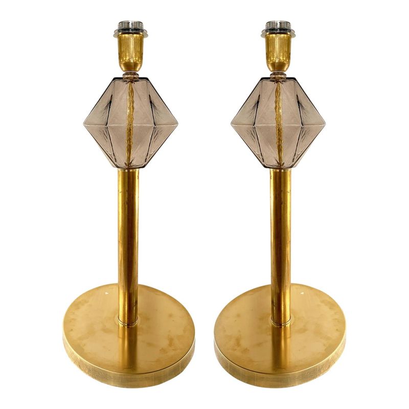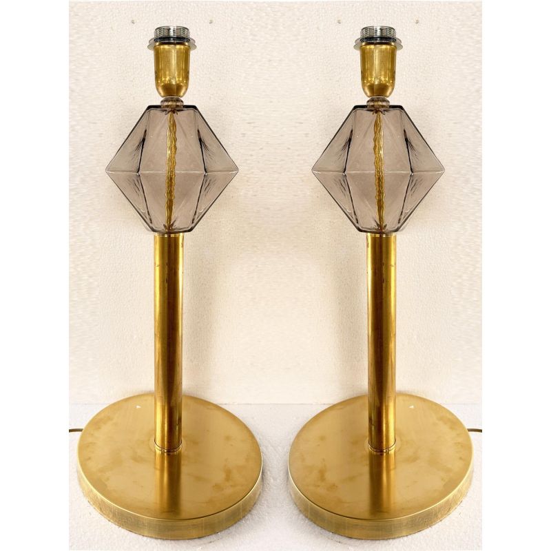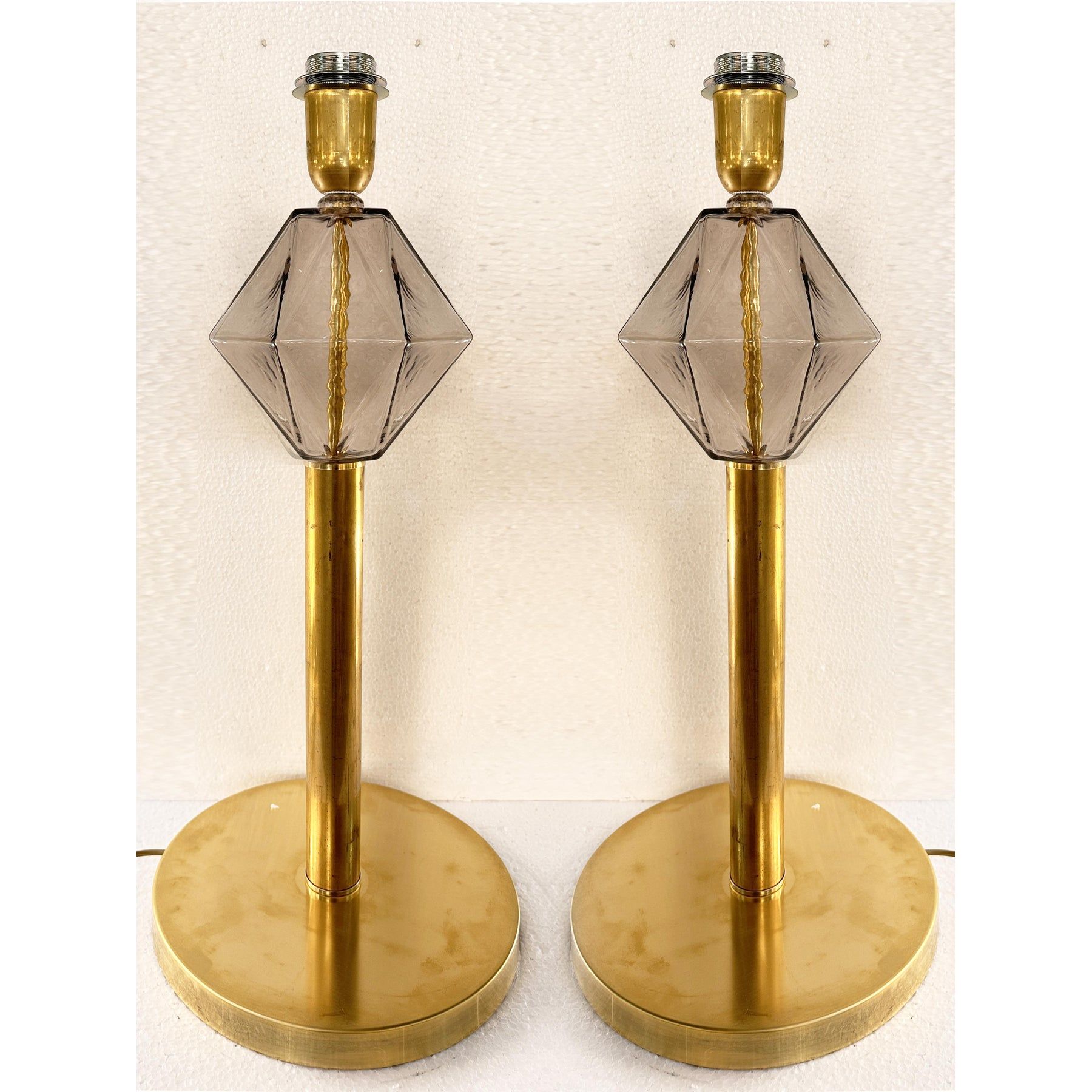 Set of Two Contemporary Italian Fumè Murano Glass Table Lamps With Unlaquered Brass