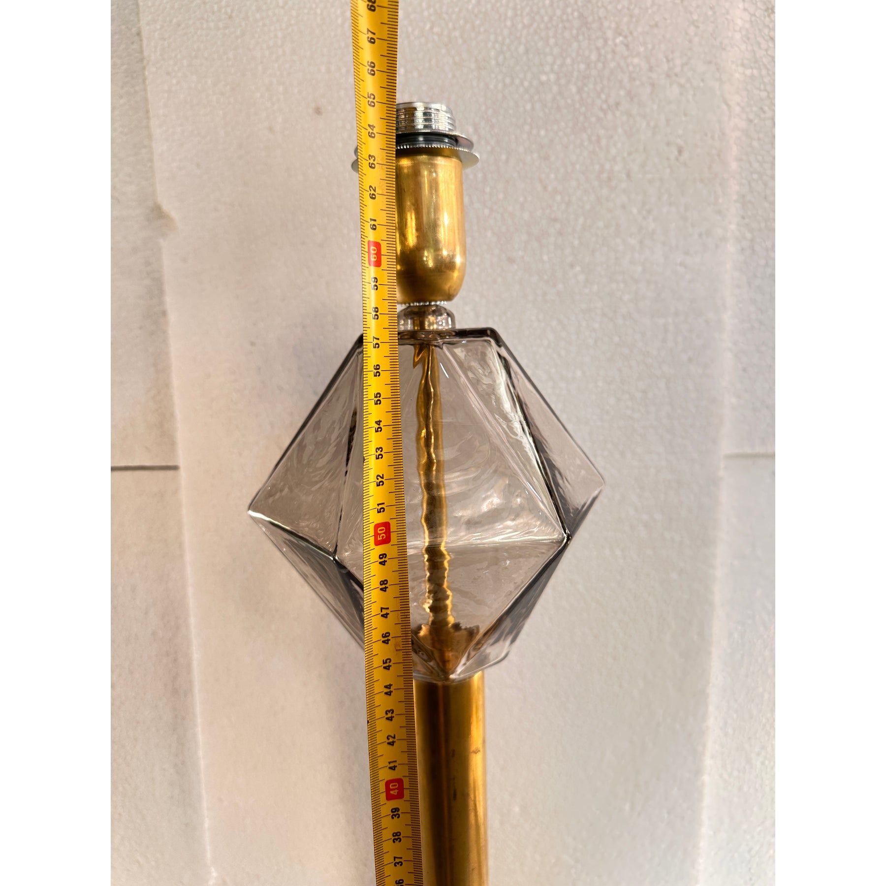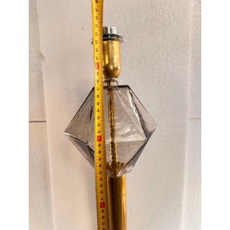 Set of two table lamps in brass and smoked Murano glass "cubes".