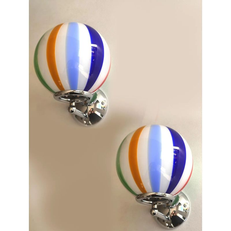 Set of Two Contemporary Multicolor "Rods" Murano Glass Wall Sconces