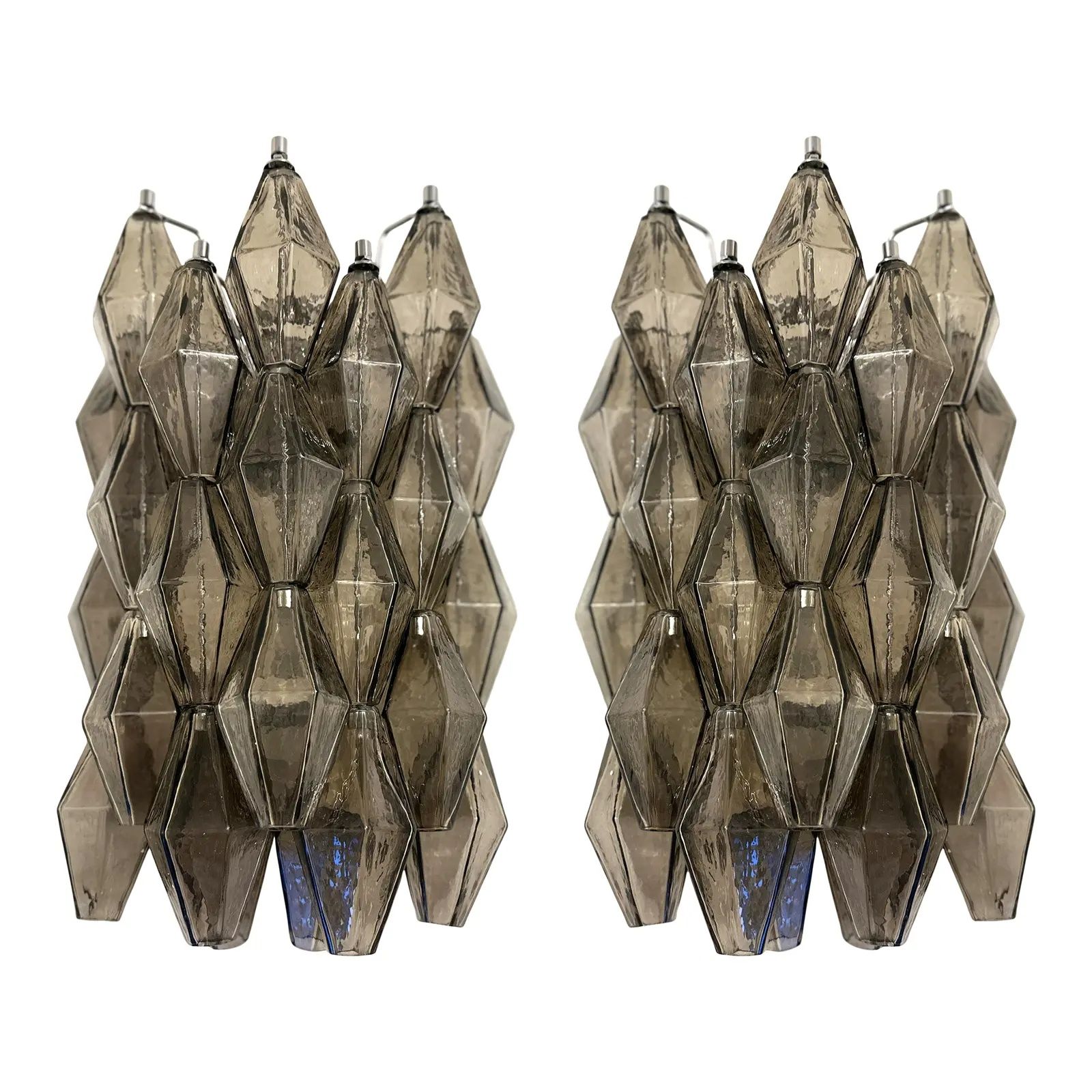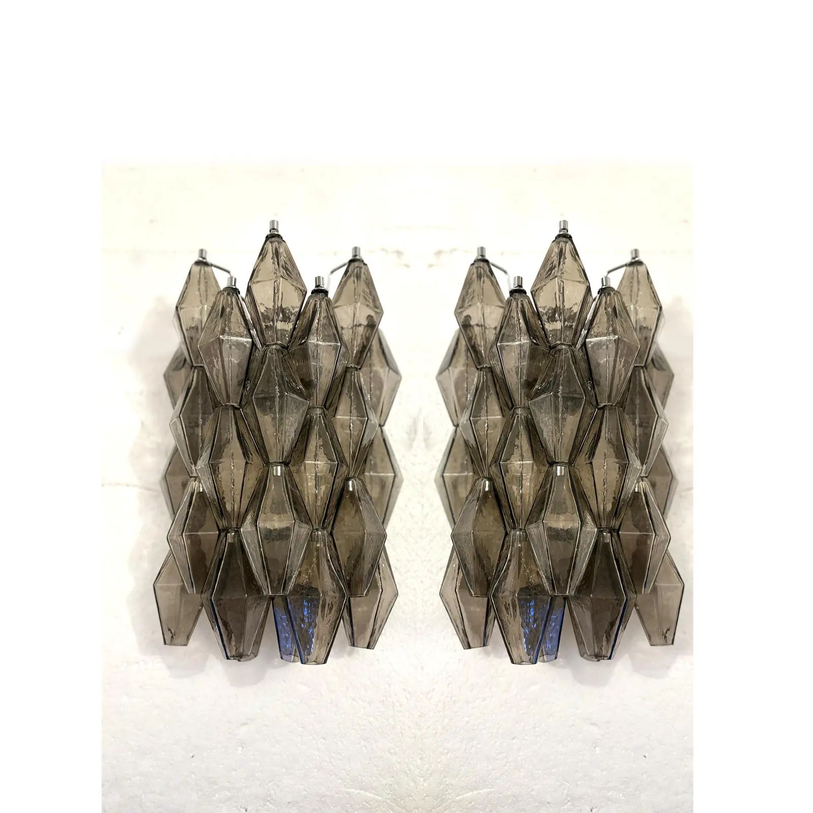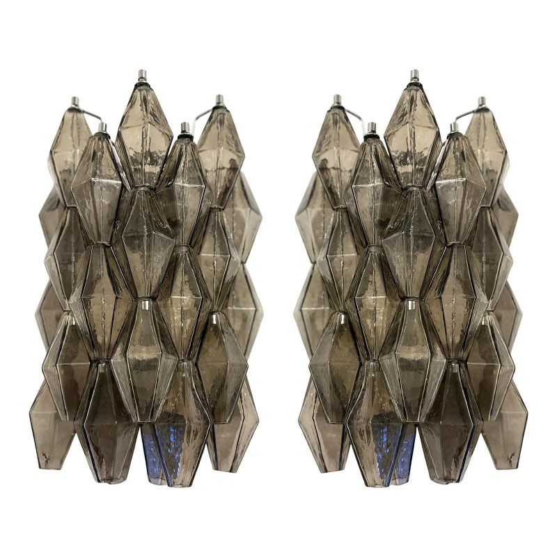 Contemporary and luxury wall sconces with fumè “POLIEDRI” Murano glass in Venini style.