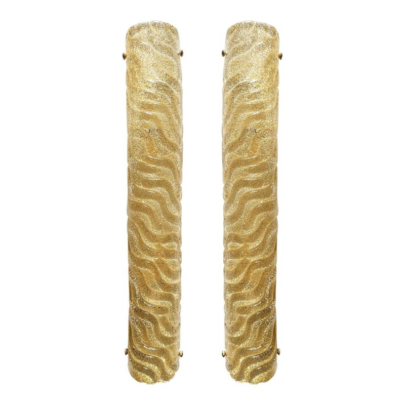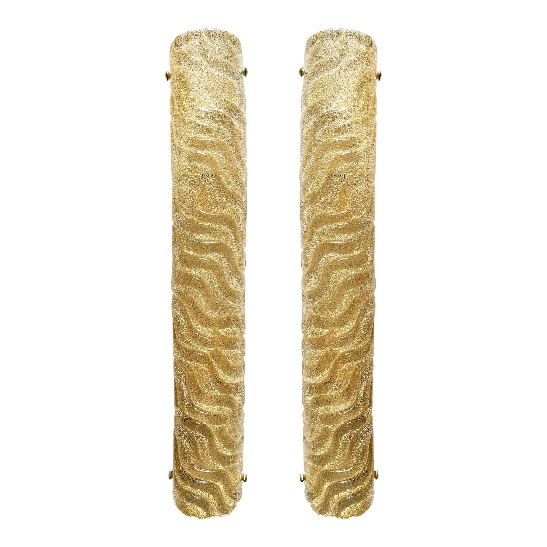 Set of Two Venetian Gold “Graniglia” Murano Glass Wall Sconce