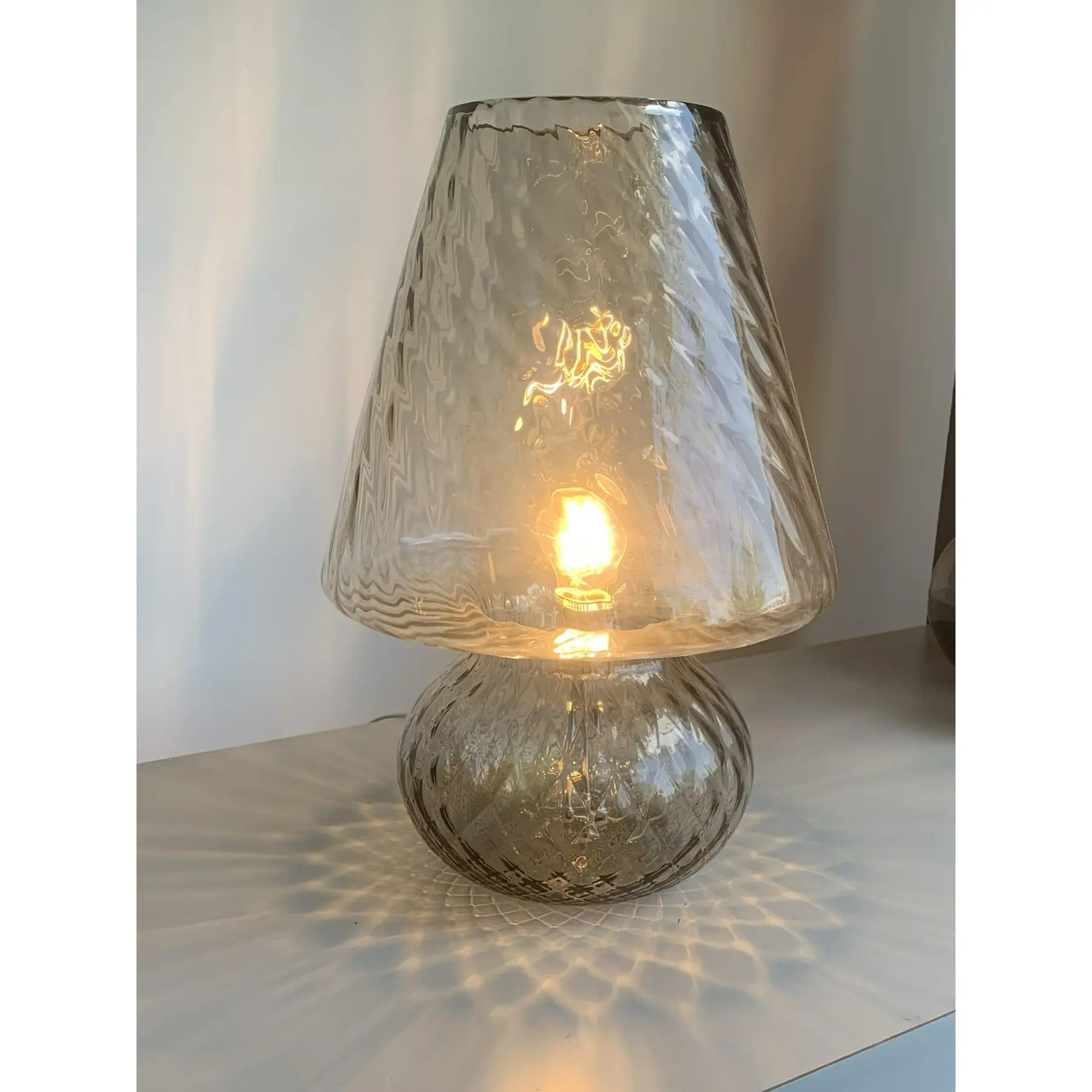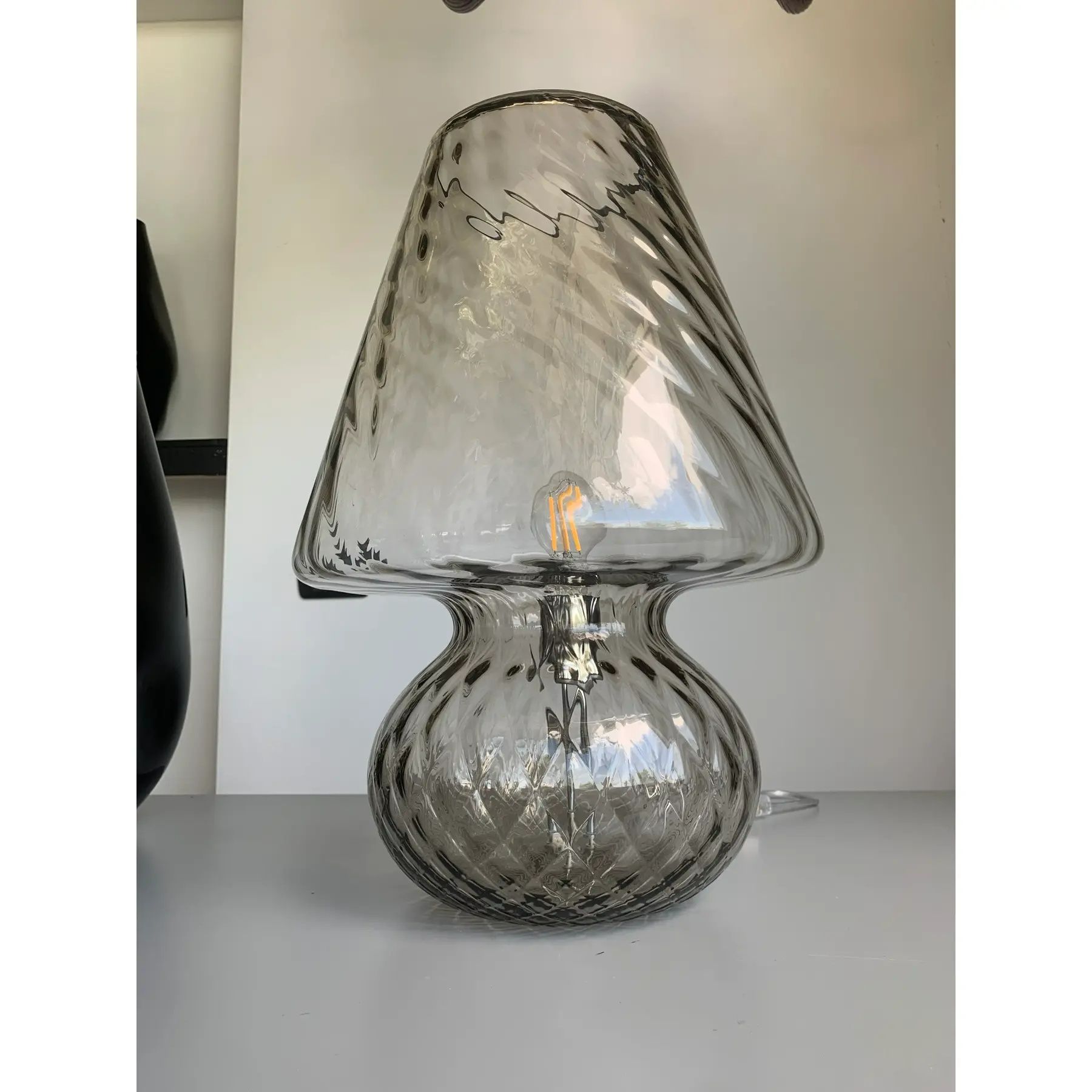 Smoked Fume' Murano Glass Table Lamp With Diamond Processing "Ballotton" Murano Style Attributed