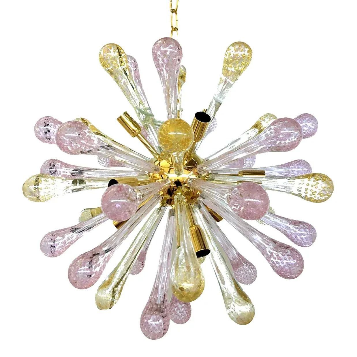 Sputnik Chandelier in Murano Glass with Gold and Pink Air Drops