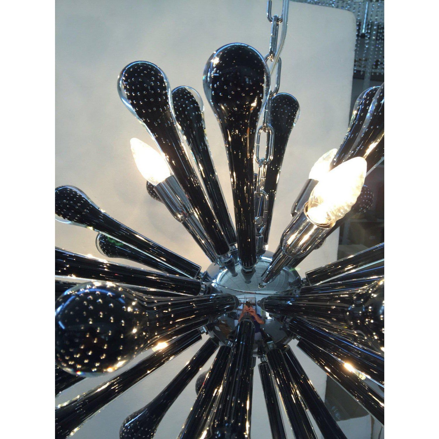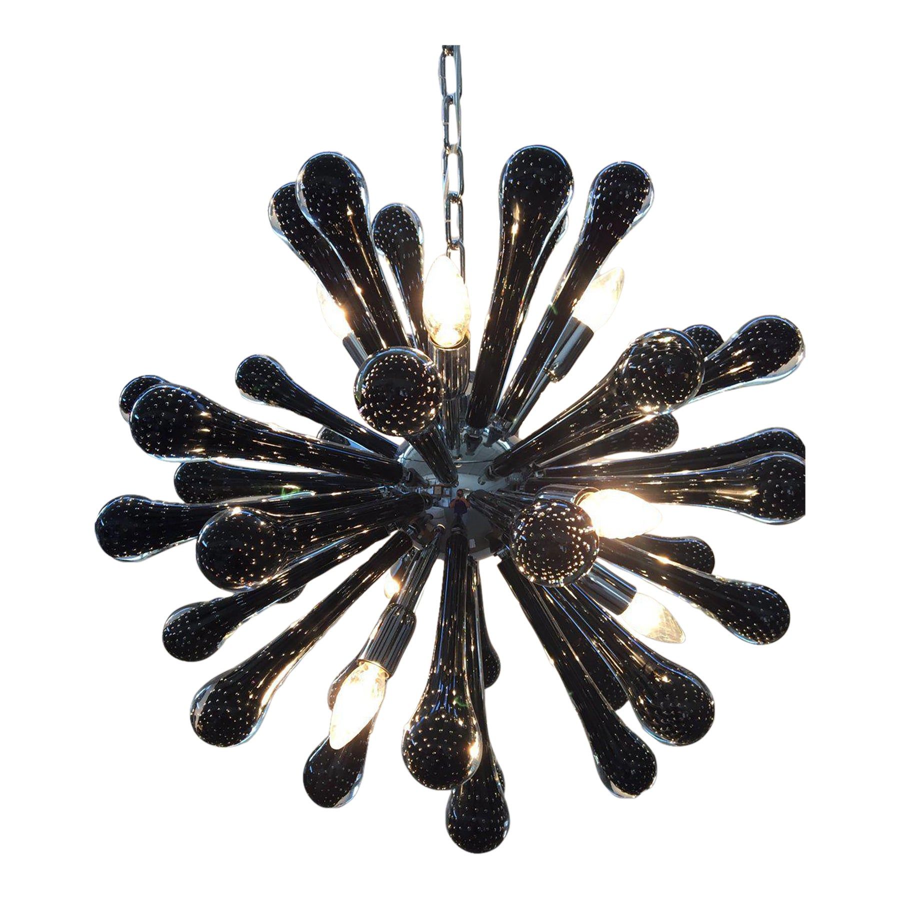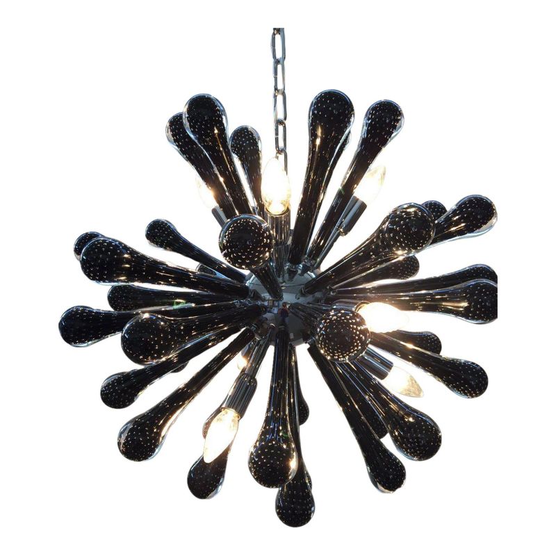 Sputnik Chandelier With Black “Drops” With Bubbles Inside